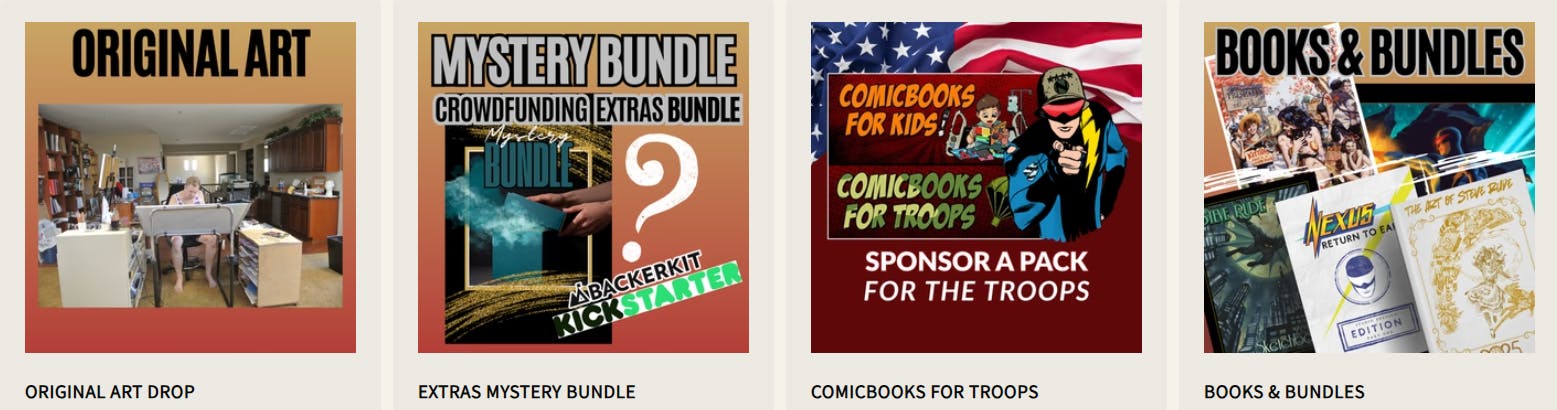 Our best 2025 deals including art PLUS help us send a warm holiday to the troops and get FREE PATREON for yourself online at www.steverude.com/HolidayPopUp
