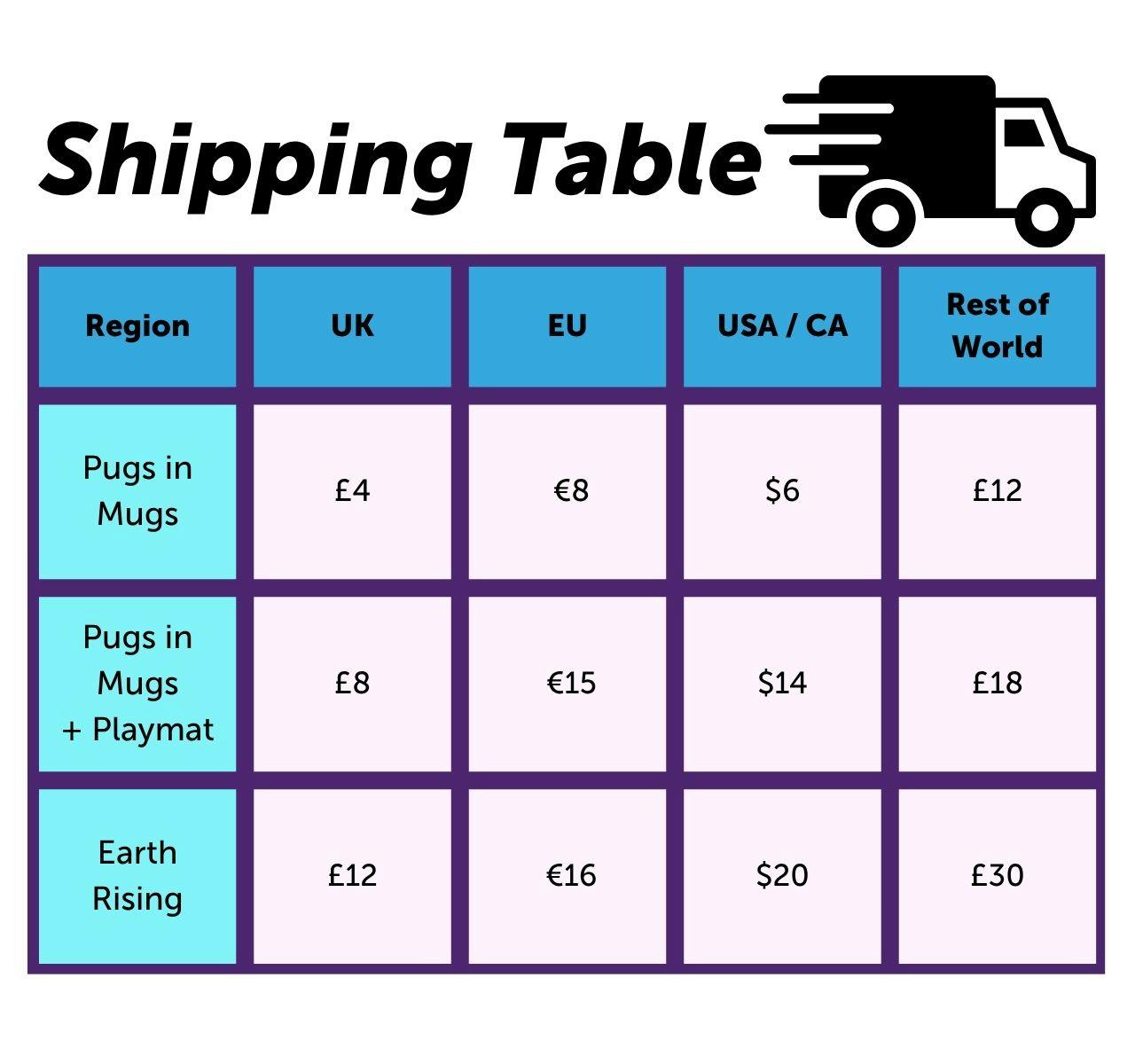 Pledge prices do not include shipping, but worry not! With our handy guide below we can tell you what it costs to get your games onto your doorstep!