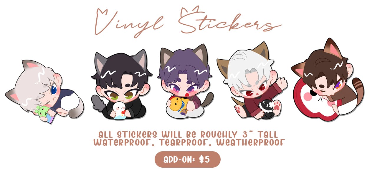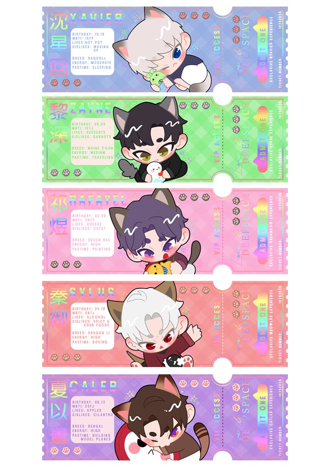 Welcome to The Love Interest Cat Café, where your favorite LADS boys have turned into adorable cats! Each design captures their charm and mischief in feline form—purrfect for fans who can’t resist a little romance and a lot of meows! 🐾
