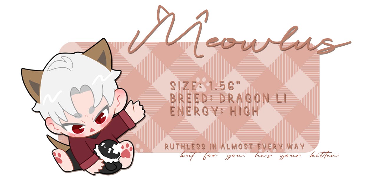 Don’t be fooled by Meowlus’s prickly first impression—behind that fierce stare lies a master strategist (and a bit of a drama king). He’ll watch your every move, waiting for the perfect moment to pounce! Sure, he’s a skilled hunter, but he’s also a total softie for cuddles and treats. Just... try to stay on his good side. We’ve already replaced way too many toys that somehow “offended” him.