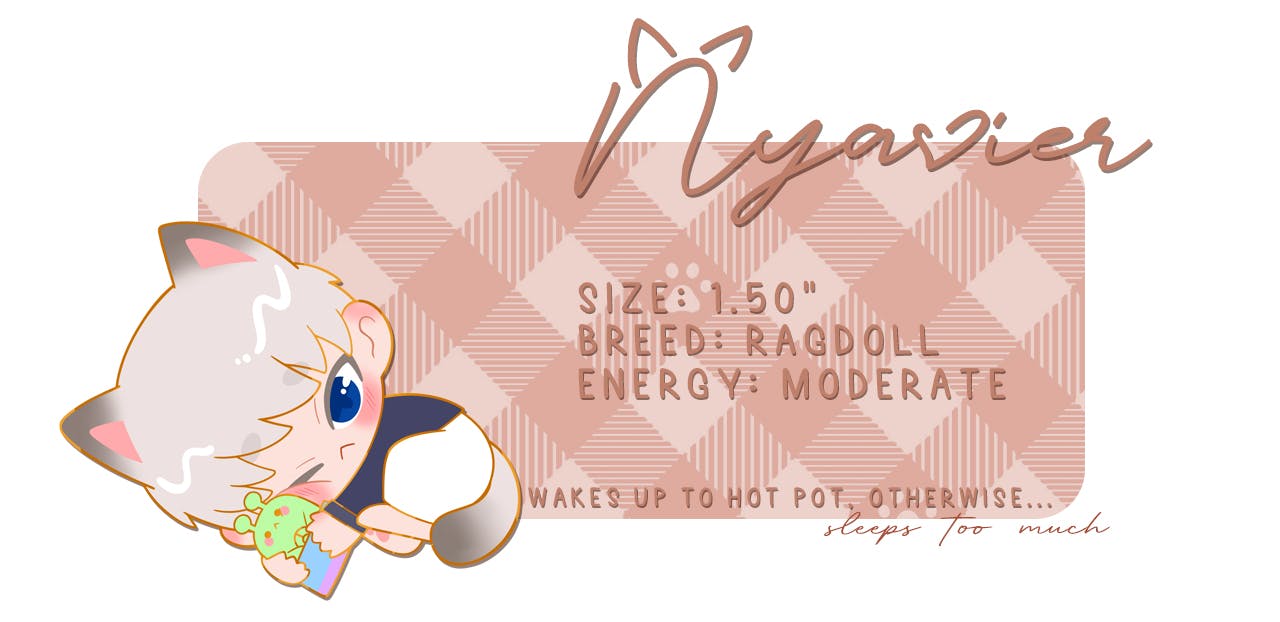Nyavier spends most of his days in deep, blissful snoozes (a solid 18 hours, minimum), but mention hotpot and he’s suddenly wide awake! This soft-spoken ragdoll prefers to drift with the flow—once he’s done stretching and yawning, of course. Your visit at the Cat Café might just be a front-row seat to his latest nap marathon, but trust us—you’ll leave with a warm heart watching this fluffy dreamer snooze without a single worry in the world.