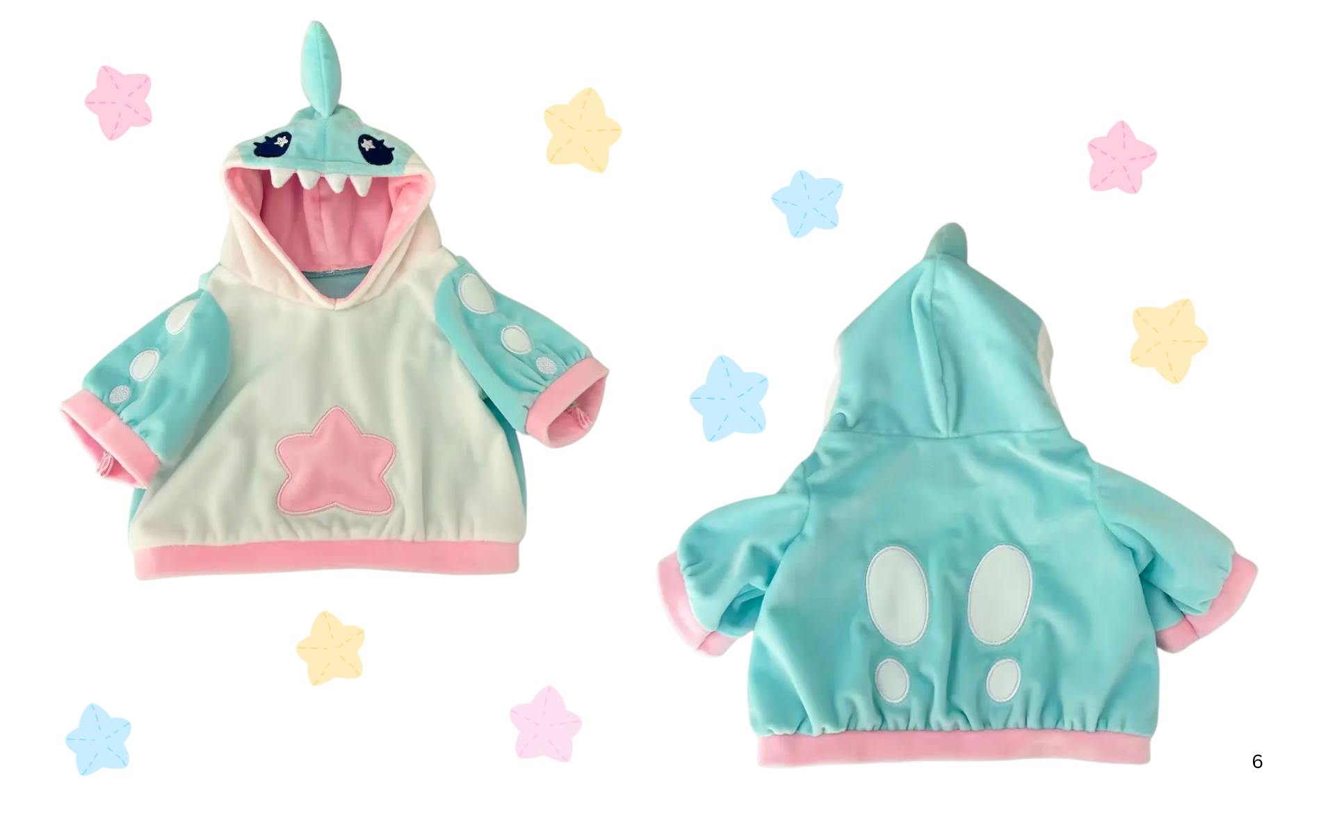 Snuggle wear is a series of super soft, snuggle oriented merch! The snuggle wear hoodies were designed for comfort and cuteness! Made of polyester that feels like a throw blanket, designed based off of beloved Sugarbell Pals. Each hoodie comes with a fun shaped pocket on the front, a hood and unique embroidered features.