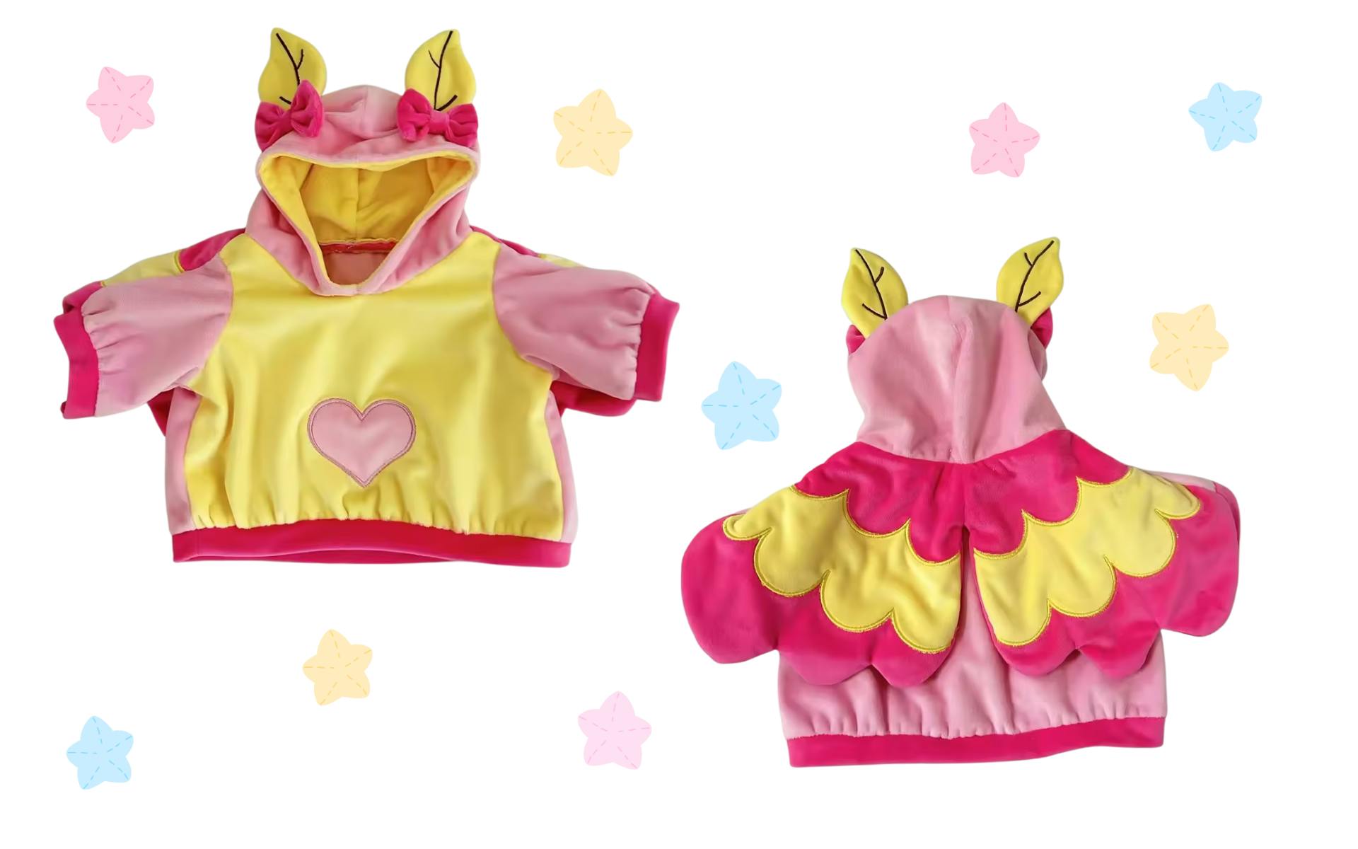 Your favorite Sugarbell characters reinvented as on-the-go pals! Become your pal while being enveloped in soft, fluffy hoodies, wear them on your back, and sport your new teeny-tiny pal in blind box form.