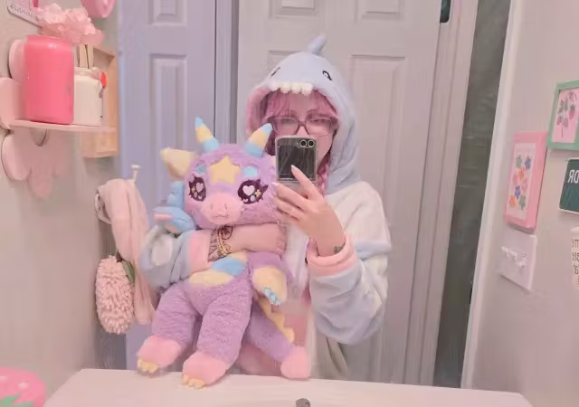 Me! Wearing the Snax Hoodie & Holding Sweetiepuff