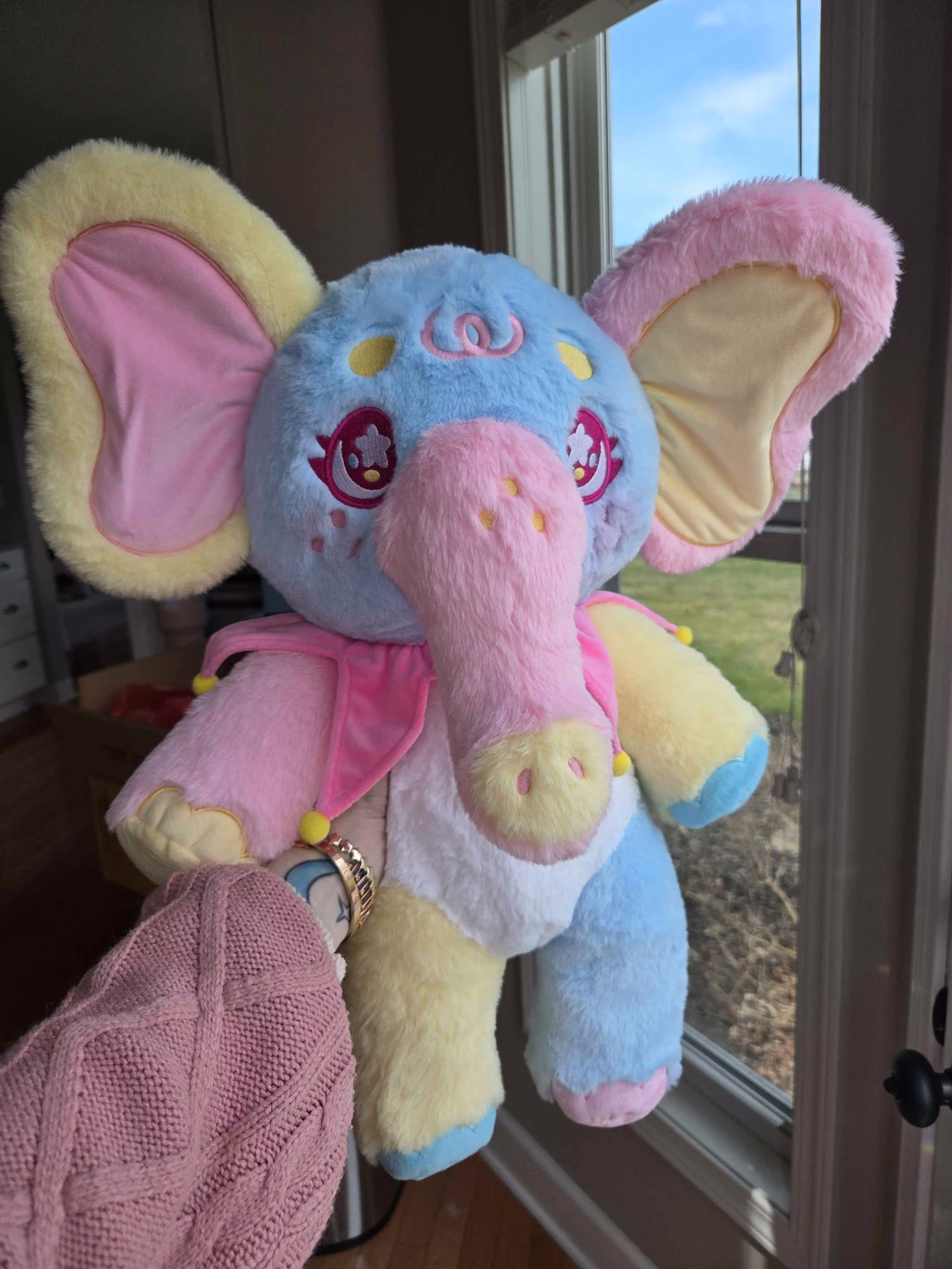 Her ears are a bit foxy, so here's the edit I gave my manu: Next up, here's Taffy! She's actually finished,except for the fur on the end of her paws, that is being changed to minky to match her toes. but I will have better photos once I receive her: Finally, I did receive the Berry hoodie! I haven't had proper time to do a try on, I will and will get videos this week, but here's some photos to see the color in better lighting. I actually really like the purple, and it's similar enough to both the backpack and the original plush:
