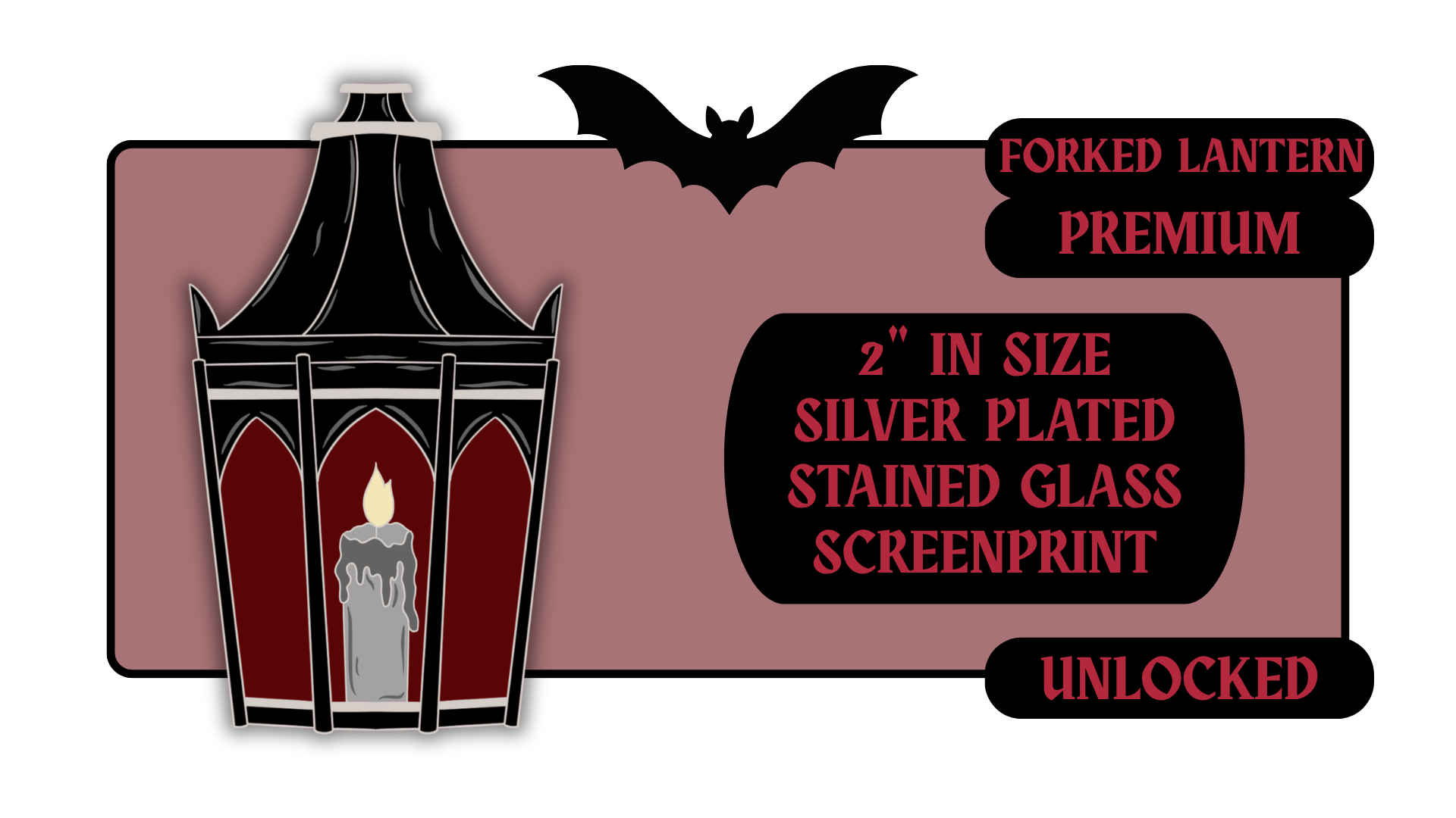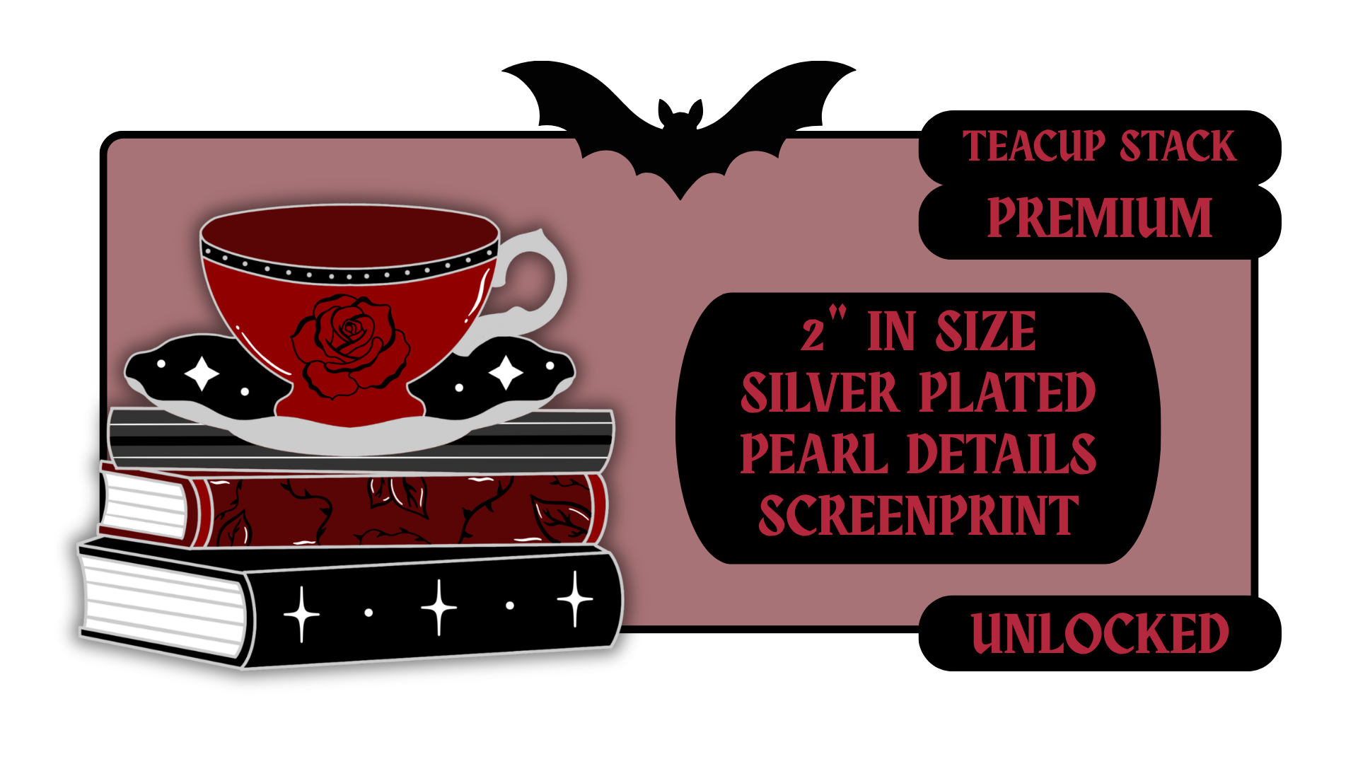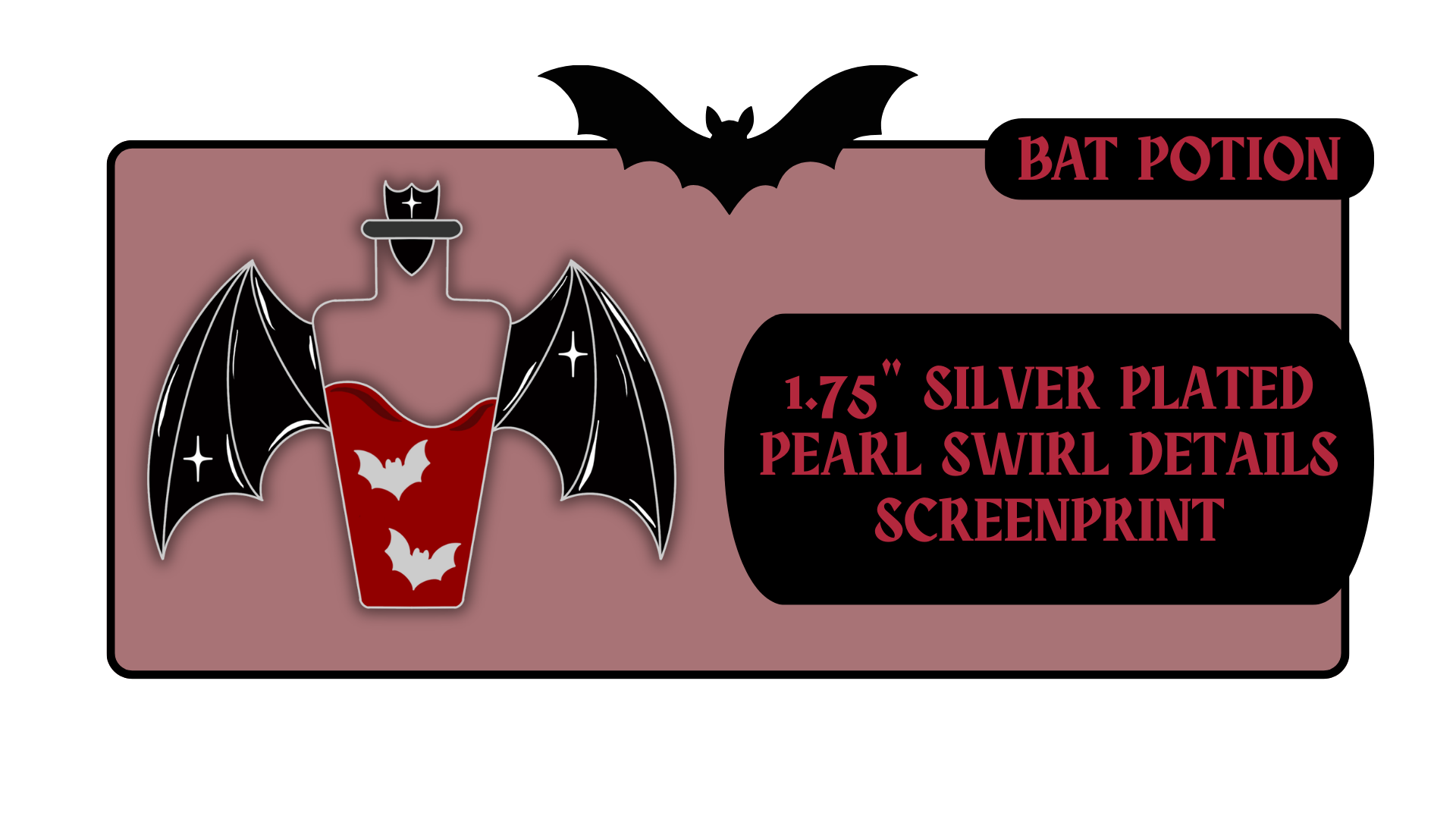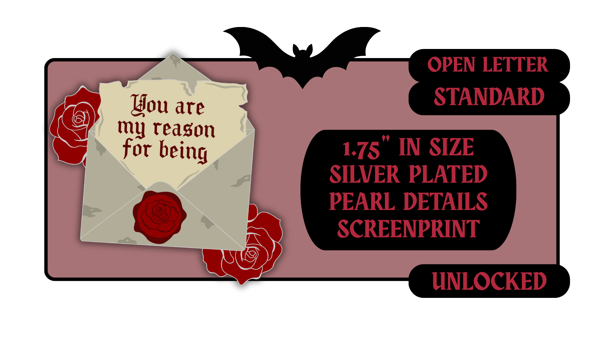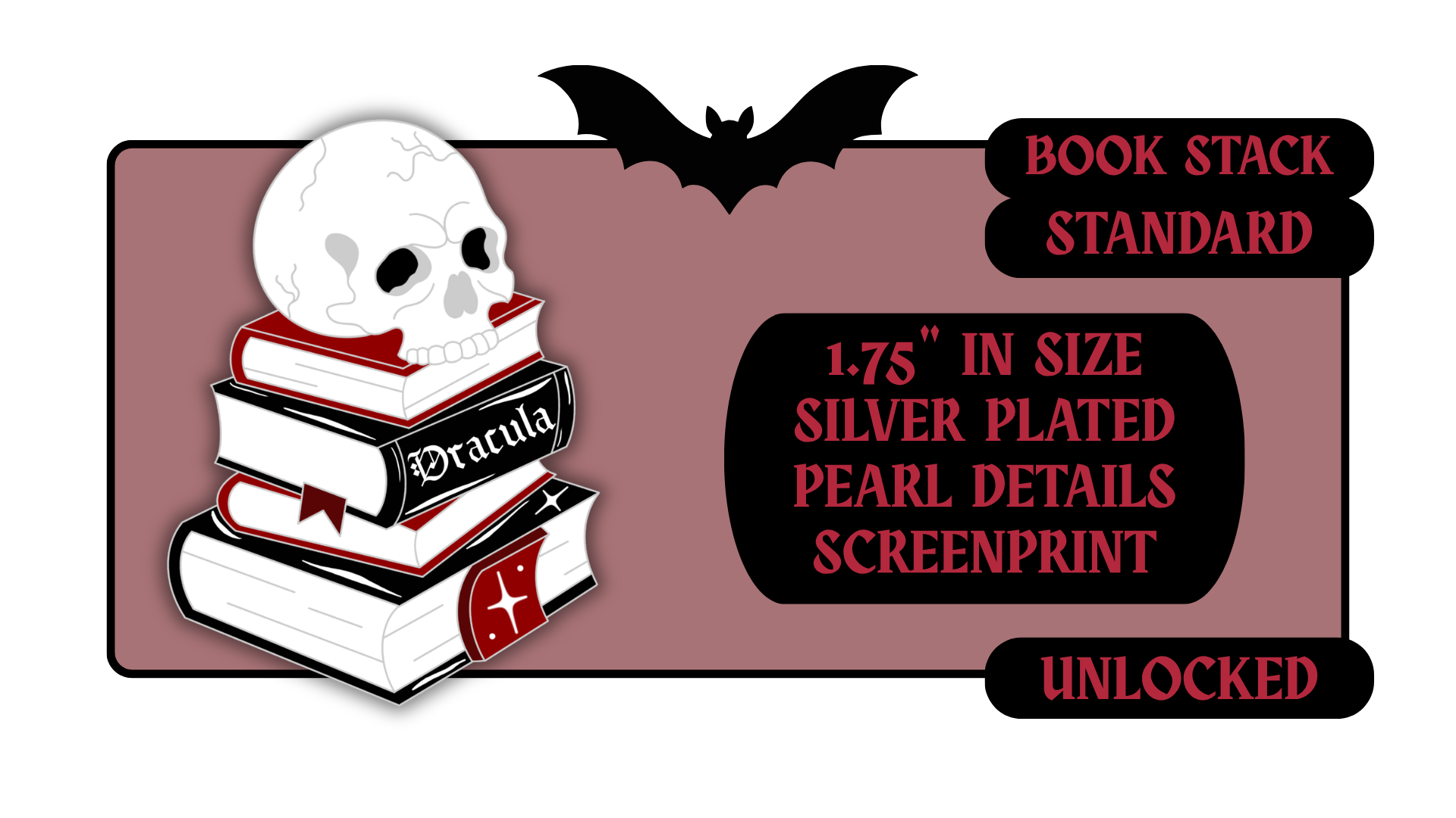 Standard Pins: between 1.5" to 1.75" in size with effects like pearl swirl, pearl enamel or glitter. Premium Pins: between 1.75" to 2.25" in size with more complicated effects like clear stained glass or 3D molded metal.