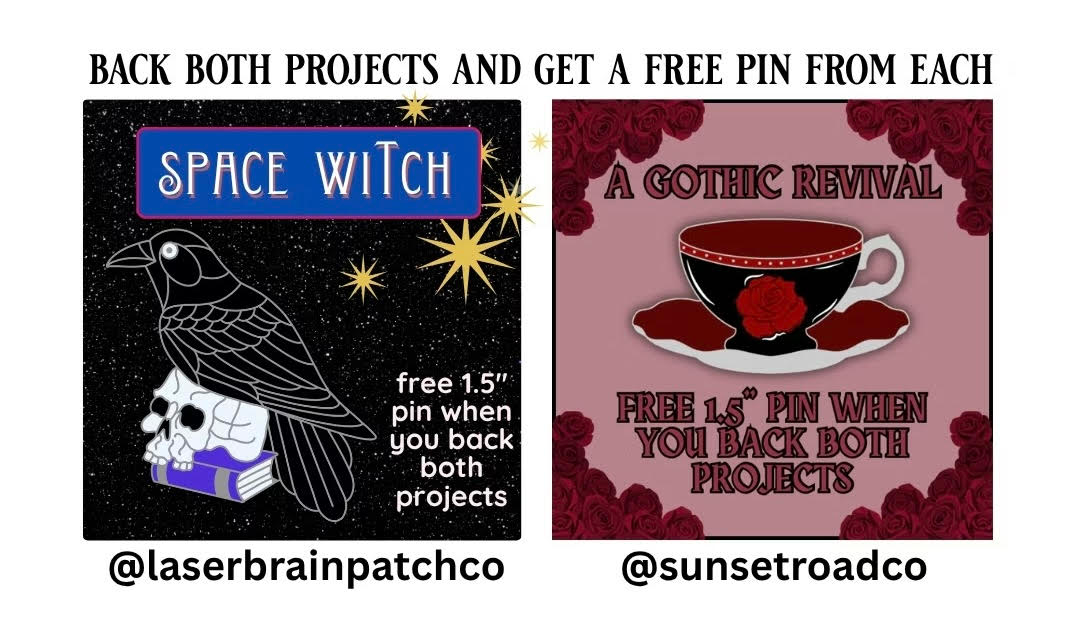 We are less than $200 from unlocking TWO more levels which would unlock every single design in the campaign. If we hit $11k, we ALSO will unlock the achievement where every single backer receives a free red bat mini pin with their pledge. If you want the freebie and the two remaining designs unlocked, please share this campaign everywhere so we can hit that goal! Thank you once again for such a phenomenal campaign so far. This campaign is such a niche, themed project that I'm thrilled has reached the audience that can appreciate it. Please, once again, share the project with anyone you would love this aesthetic.