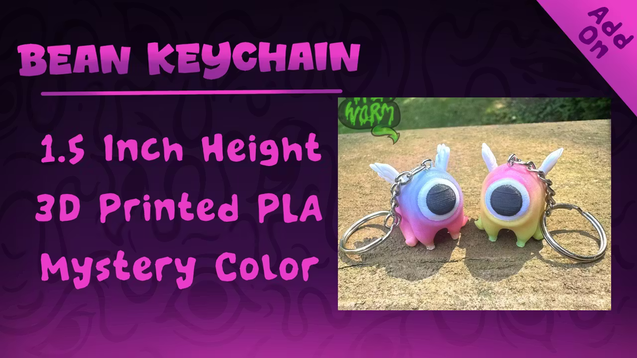 Standard Acrylic Keychains will feature a variety of effects at a larger size. You can add them to your order either by pledging to the Acrylic Keychain tier or by selecting the Acrylic Keychain add-on after selecting your pledge