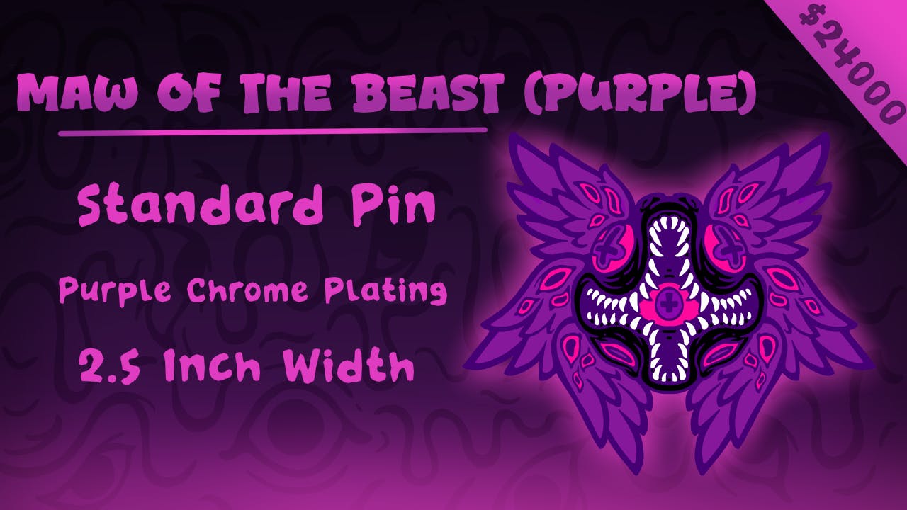 1.75 Inch Height with Purple Chrome Plating. Pin will feature translucent enamel and half raised metal accents. Translucent color may vary as a result of manufacturing. Dual clutch backing
