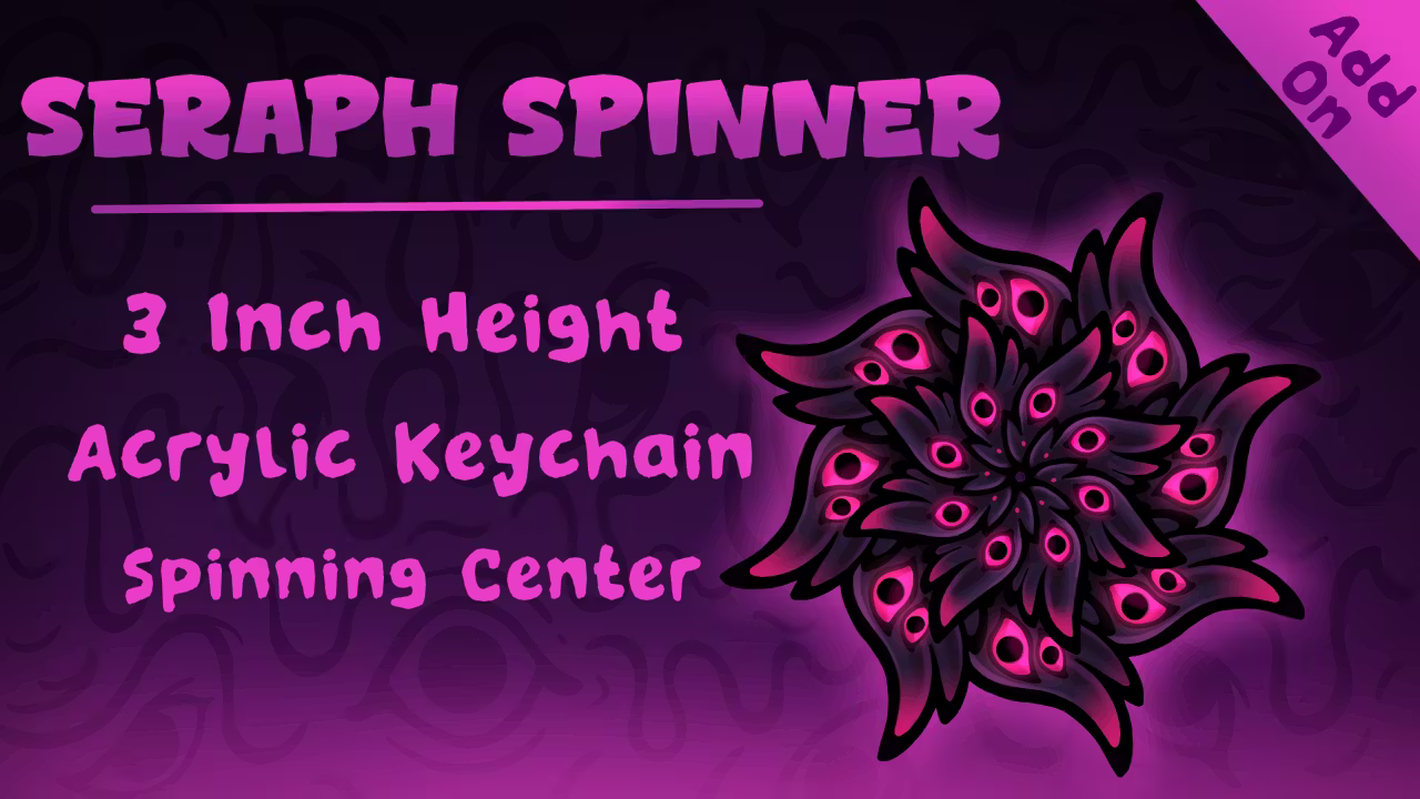 For the Seraph Spinner acrylic keychain, the back of the design will feature a different design on the back, which you can find below.