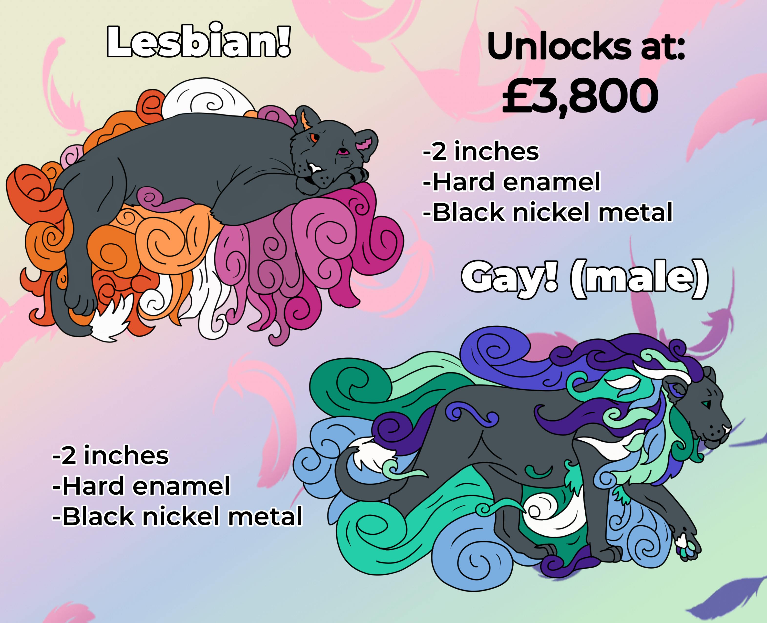 What's unlocked and when?! The main goal (aka the £1,300) will unlock the following: The charity pin The lion's pride pin The early backer feather charm The returning backer tote bag The cross colab free pin The free paw mini pin (back 3 or more projects)
