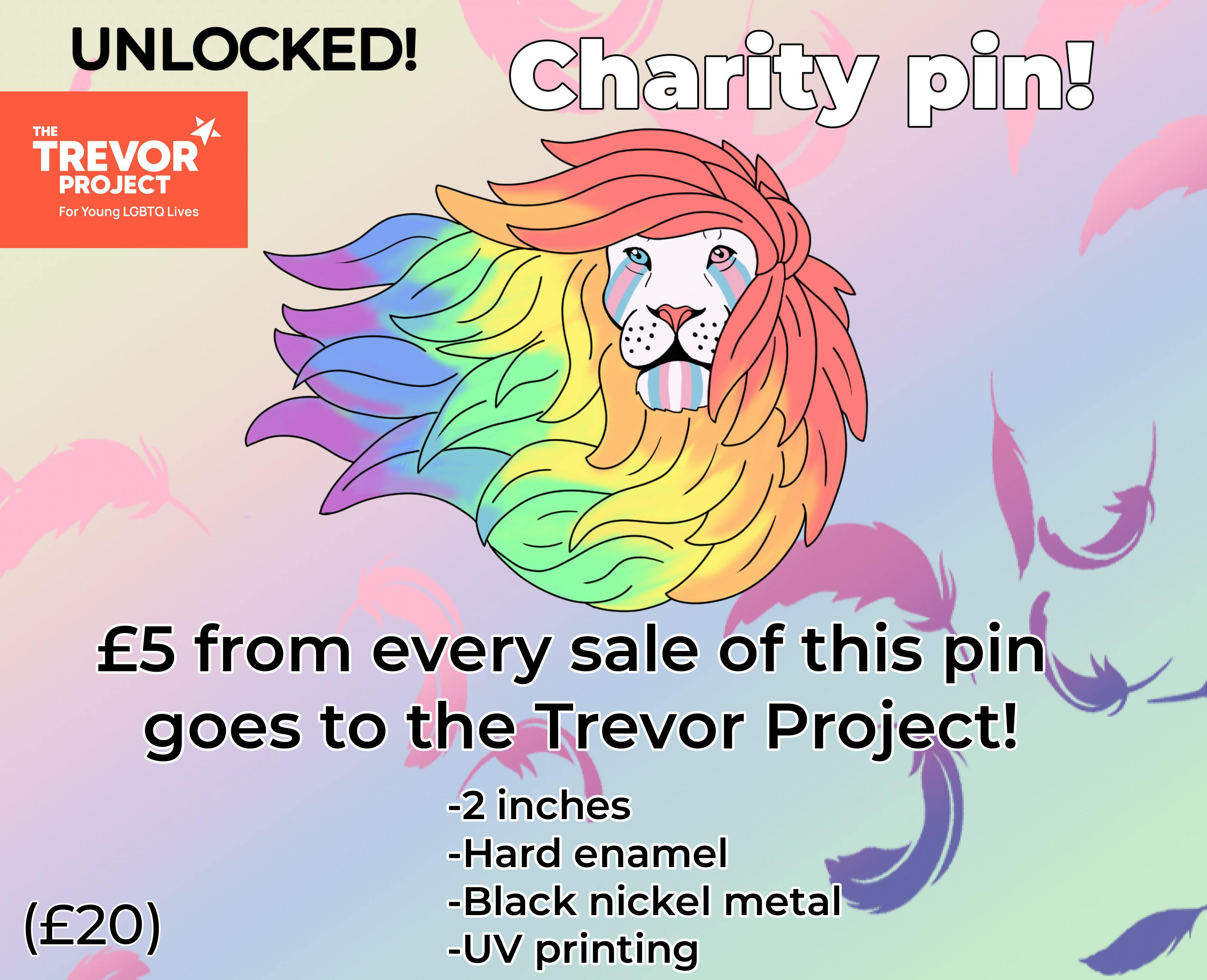 This pin is going to cost a little more at around £20, BUT that's because £5 from every sale of this pin will be going to The Trevor Project.
