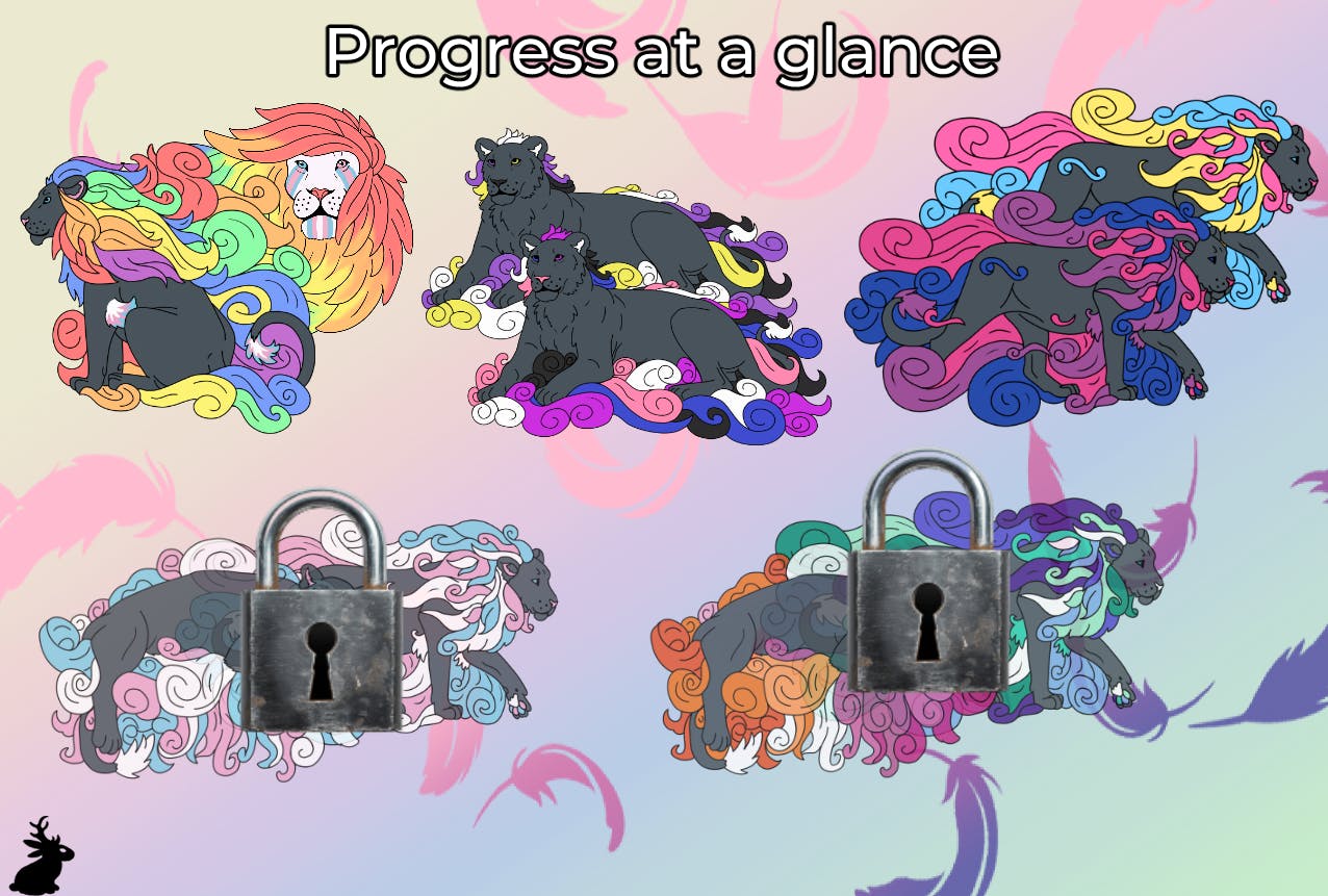 Each subsequent goal goes to unlocking two more sets of pride-themed lion pins! We may consider unlocking more designs if we smash all the current goals.