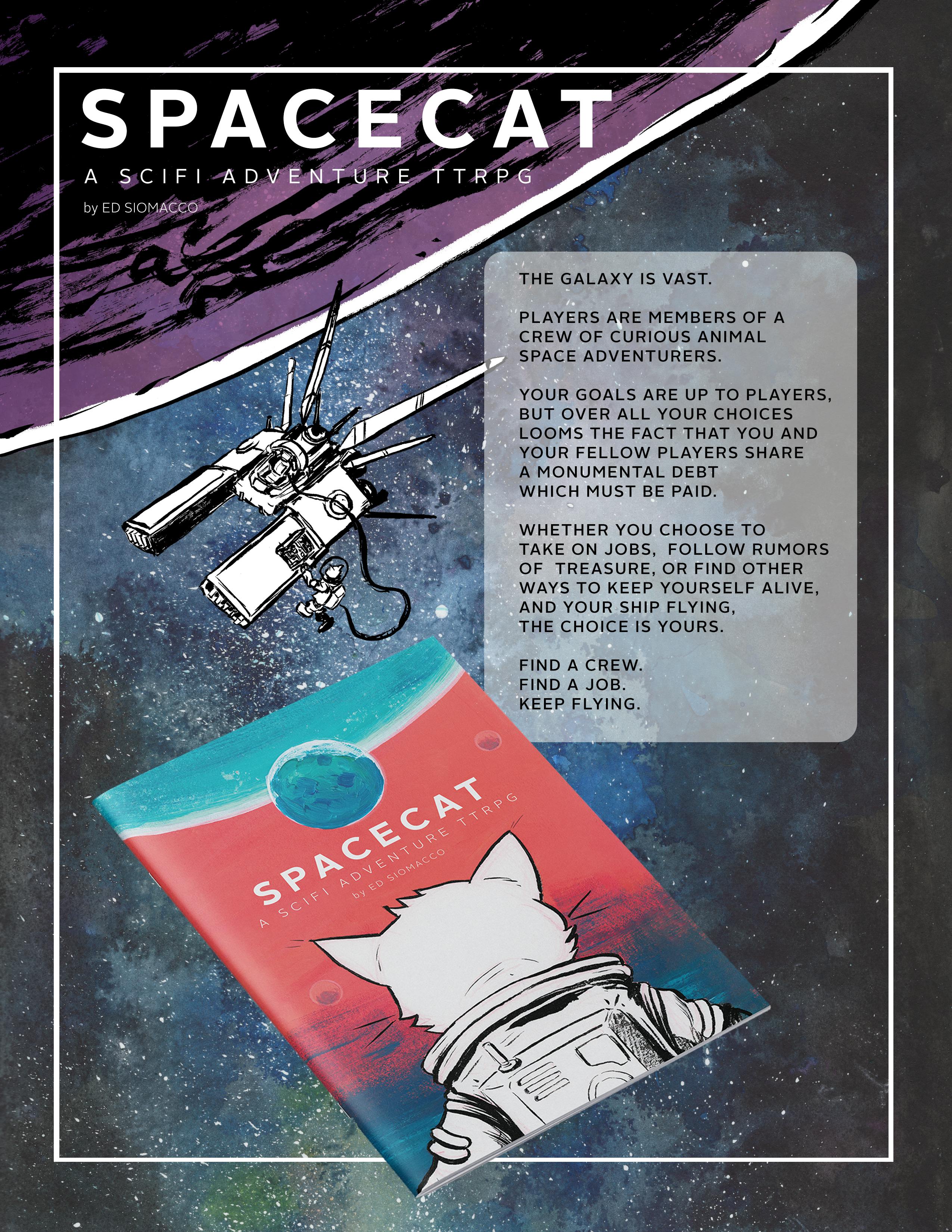 "SpaceCat Adventures" is bringing the world from my webcomic, "The Adventures of SpaceCat" into a rules-lite adventure sci-fi TTRPG