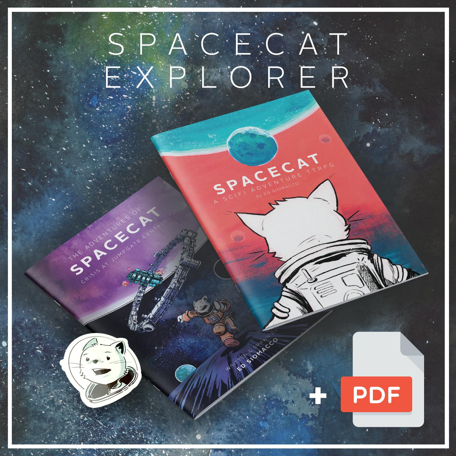 INCLUDES: The 26+ page "SpaceCat Adventures" TTRPG core book (PDF) PDF only version of the 16+ page core book with everything needed to create and play the game.