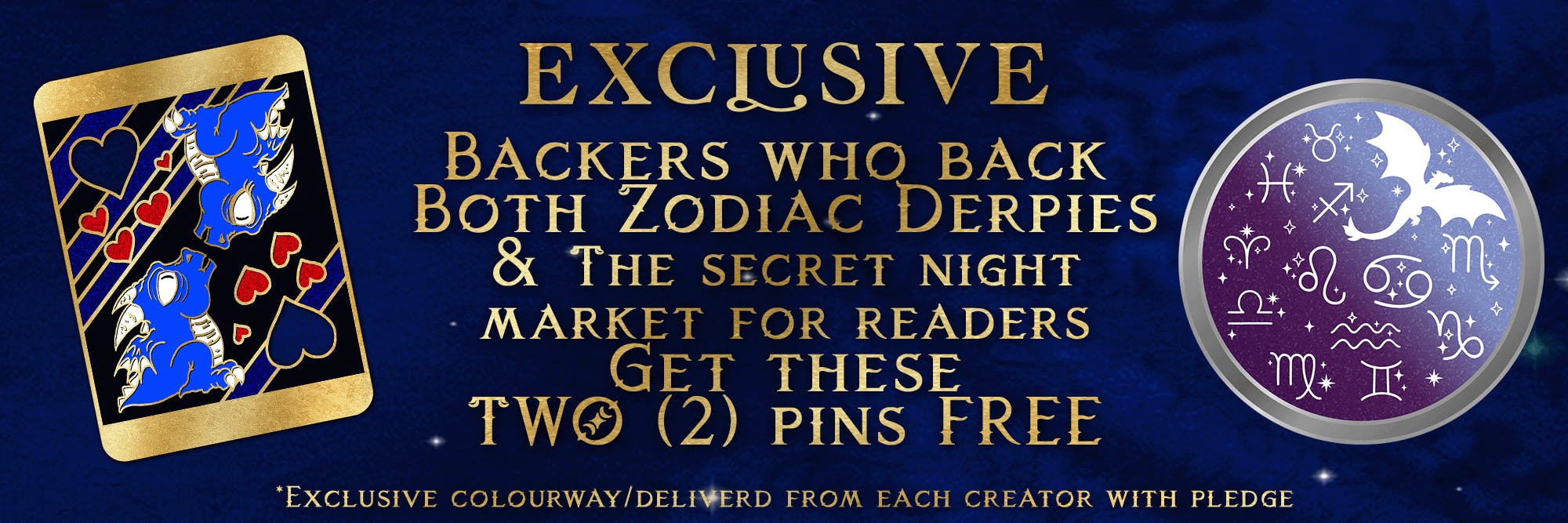 Did you miss the first Gilded & Derpy Dragon campaigns? Well fear not, you can add on any of the unlocked pin designs! Just add as many as you want from the add-ons section (make final selection in the pledge manager!