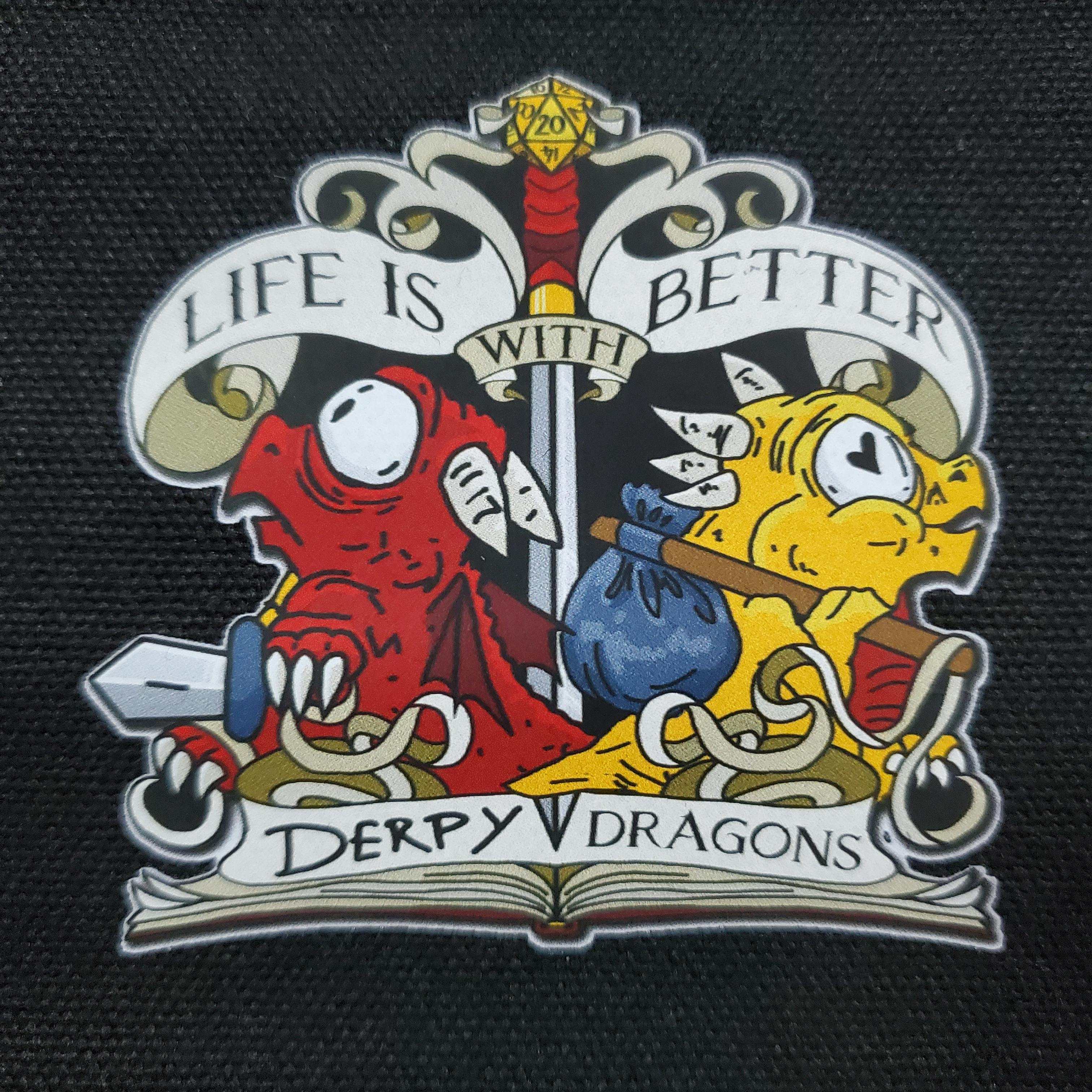 Every one needs a place to proudly display their Derpy Dragons. And what is better than a Derpy themed banner? Featuring a brand new design "Life is better with Derpy Dragons". Printed on black canvas and comes ready to hang!