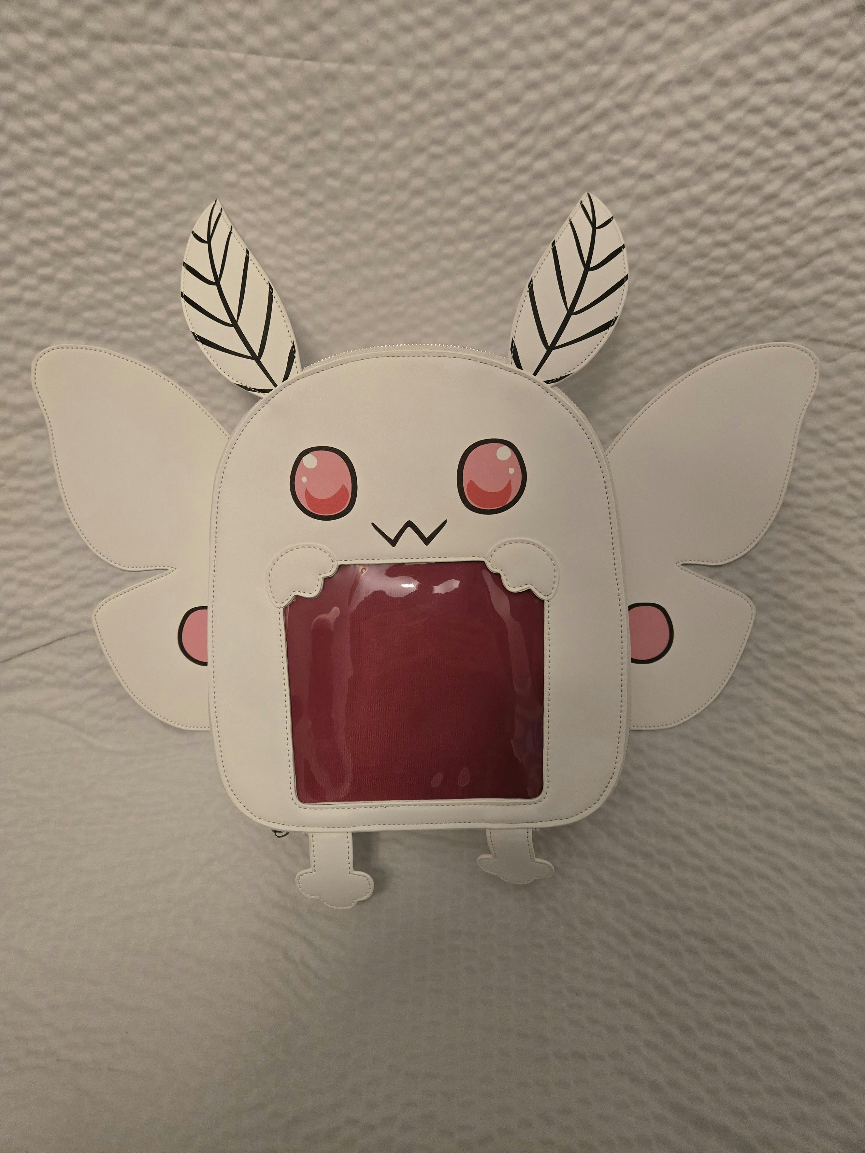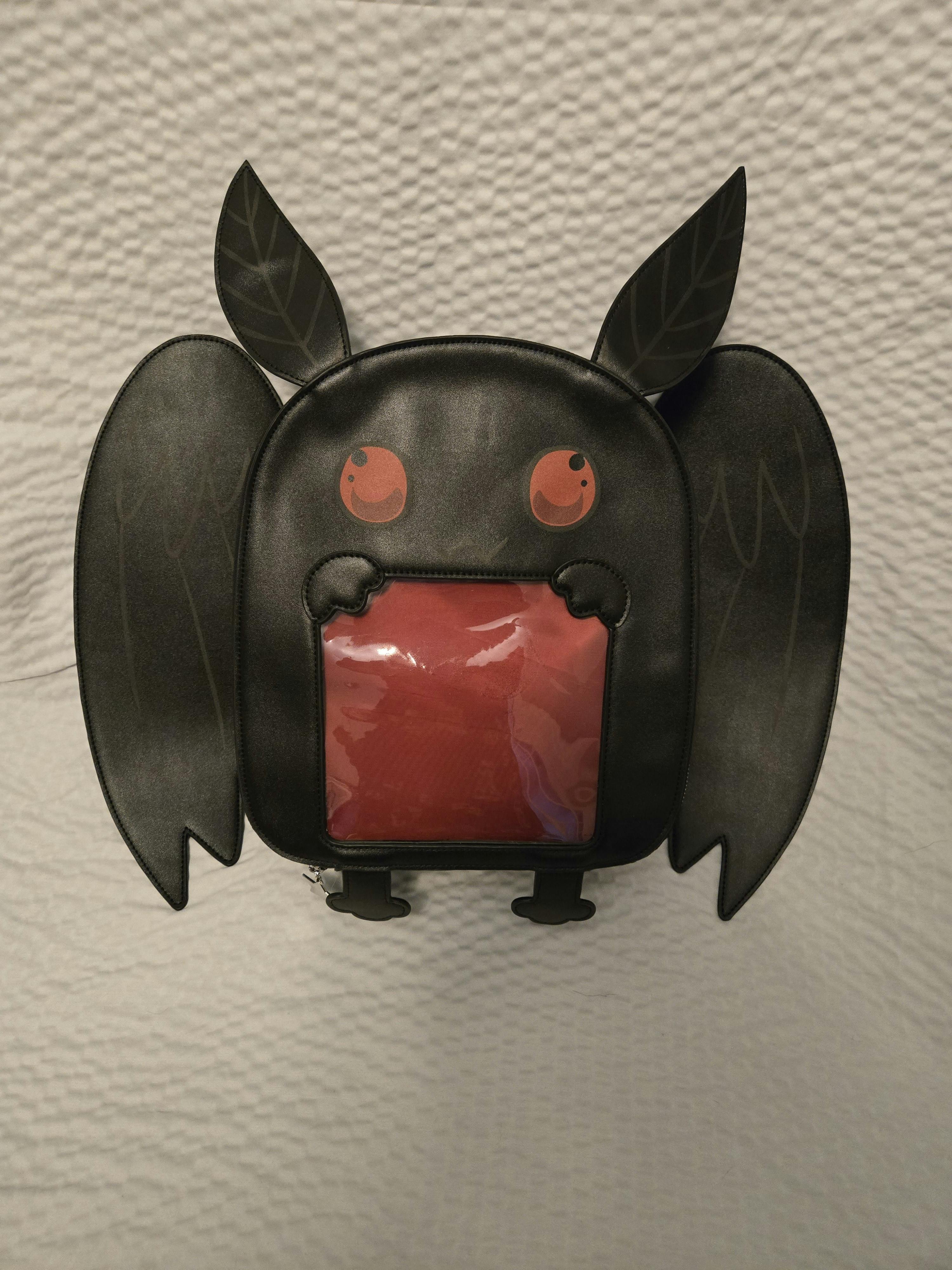 Mothman ita Backpack size 12x9x5 in. This does not include the size with the wings attached. Wings on the backpack have snaps to switch them out if wanted.