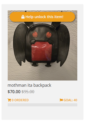 If you are interested in Pre- Orders please click the link on our page. we have added the mothman ita Backpack in hopes to getting enough people interested we will be able to fund it.