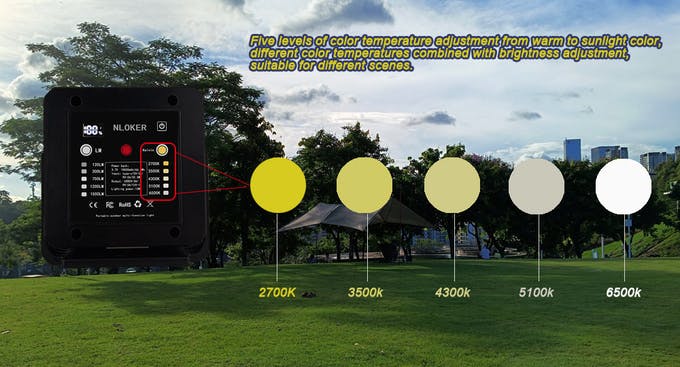 NLOKER color temperature can be adjusted in 5 levels from 2700K to 6500K. The first level is 2700K, the second level is 3500K, and the third level is 4300K, which is more inclined to warm tones and gives people a warm and comfortable feeling. The fourth level is 5100K and the fifth level is 6500K.