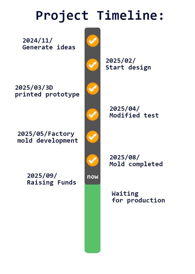 Our mold has been developed and is being prepared for production in the factory. We urgently need your support. Thank you. Once the funds are in place, we can start production immediately and arrange for shipment to deliver it to you in a timely manner.