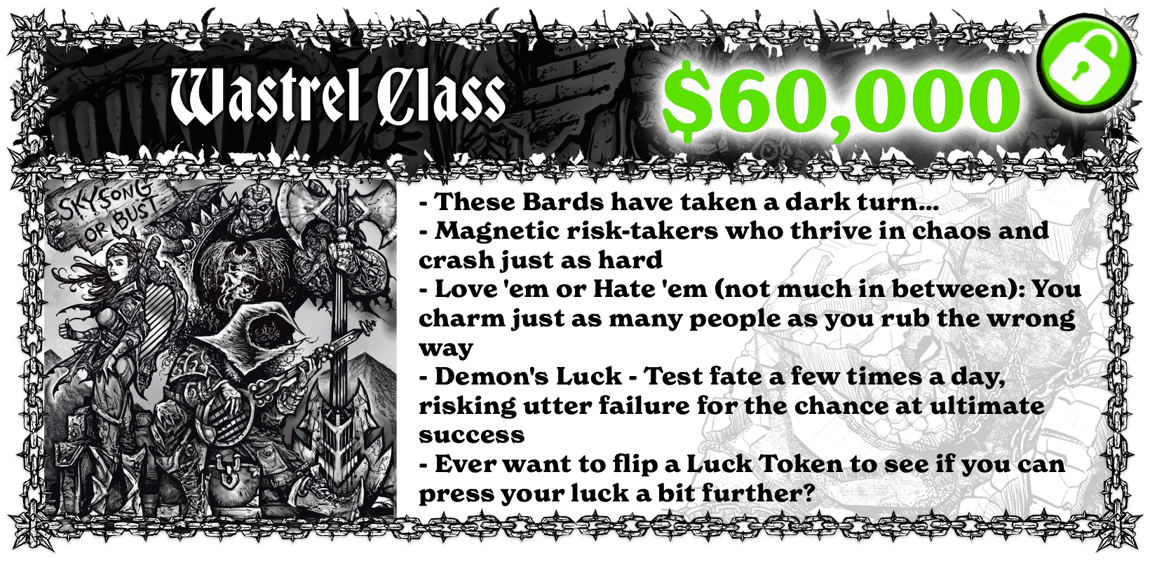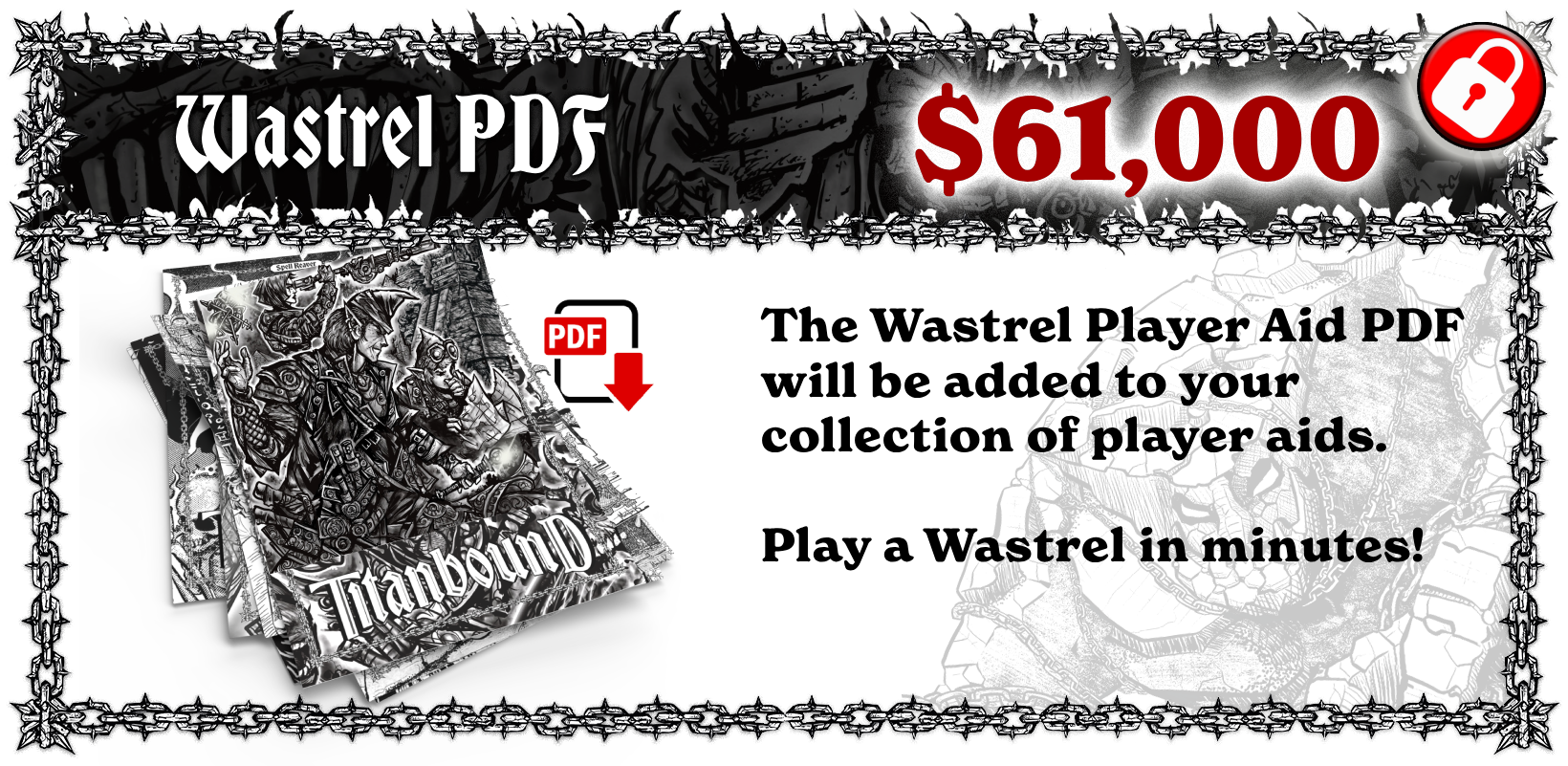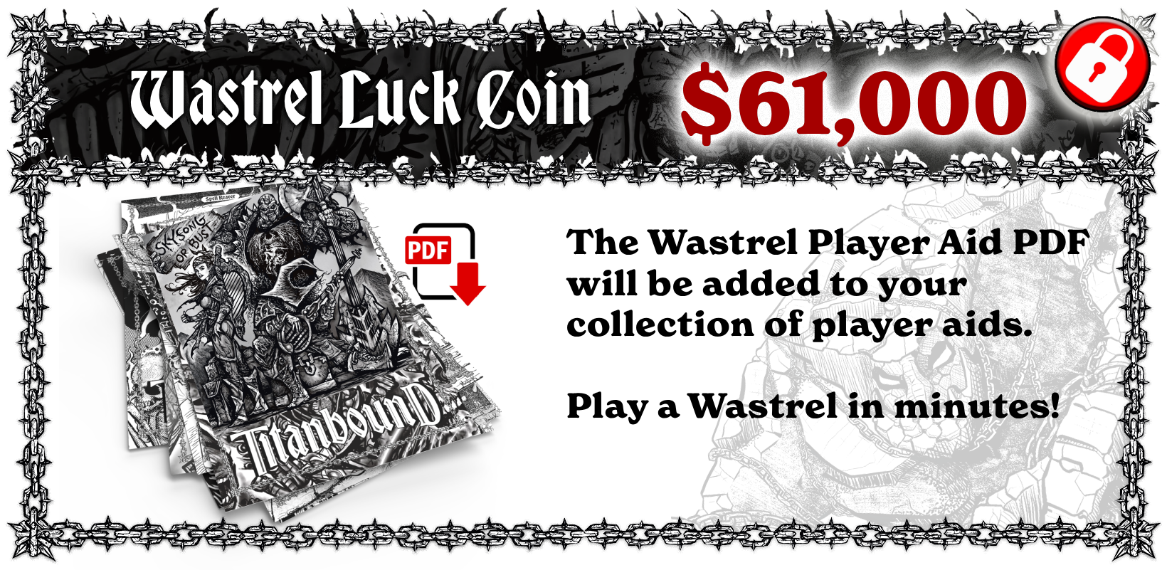 At $61,000, we unlock the Wastrel Player Aid handout PDF—everything a player needs to create a Wastrel and start playing in minutes.