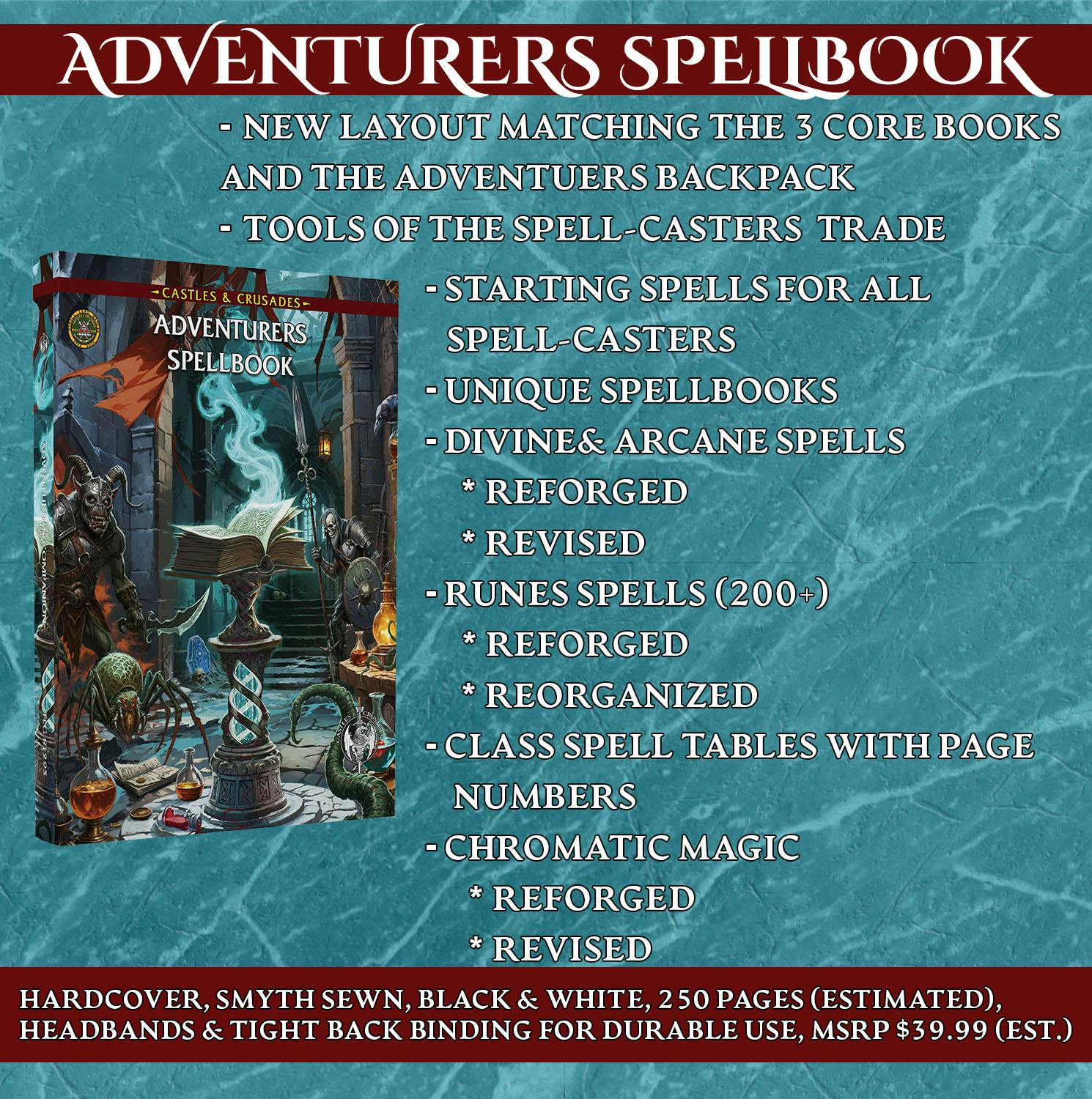 This is the second printing of our wildly popular Adventurers Spellbook, a book designed for use with all spell casters as it includes all the spells culled from a host of sources. Designed to make using spells for any caster fast and simple. Now Reforged and brought up to the latest non OGL content.