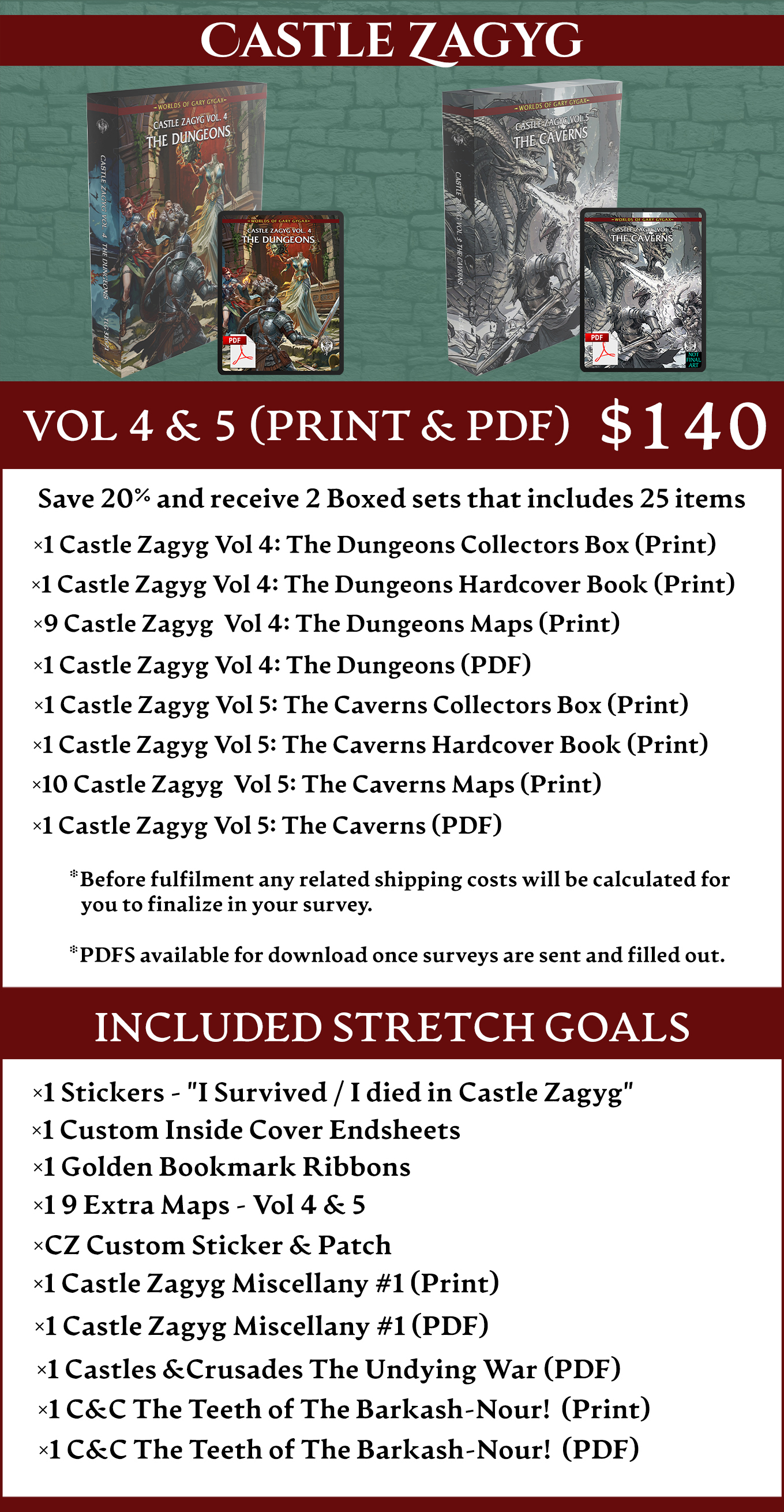 Castle Zagyg Vol. 5 The Caverns (dungeon levels 10-17 and sub-levels), Box Set and Hardcover