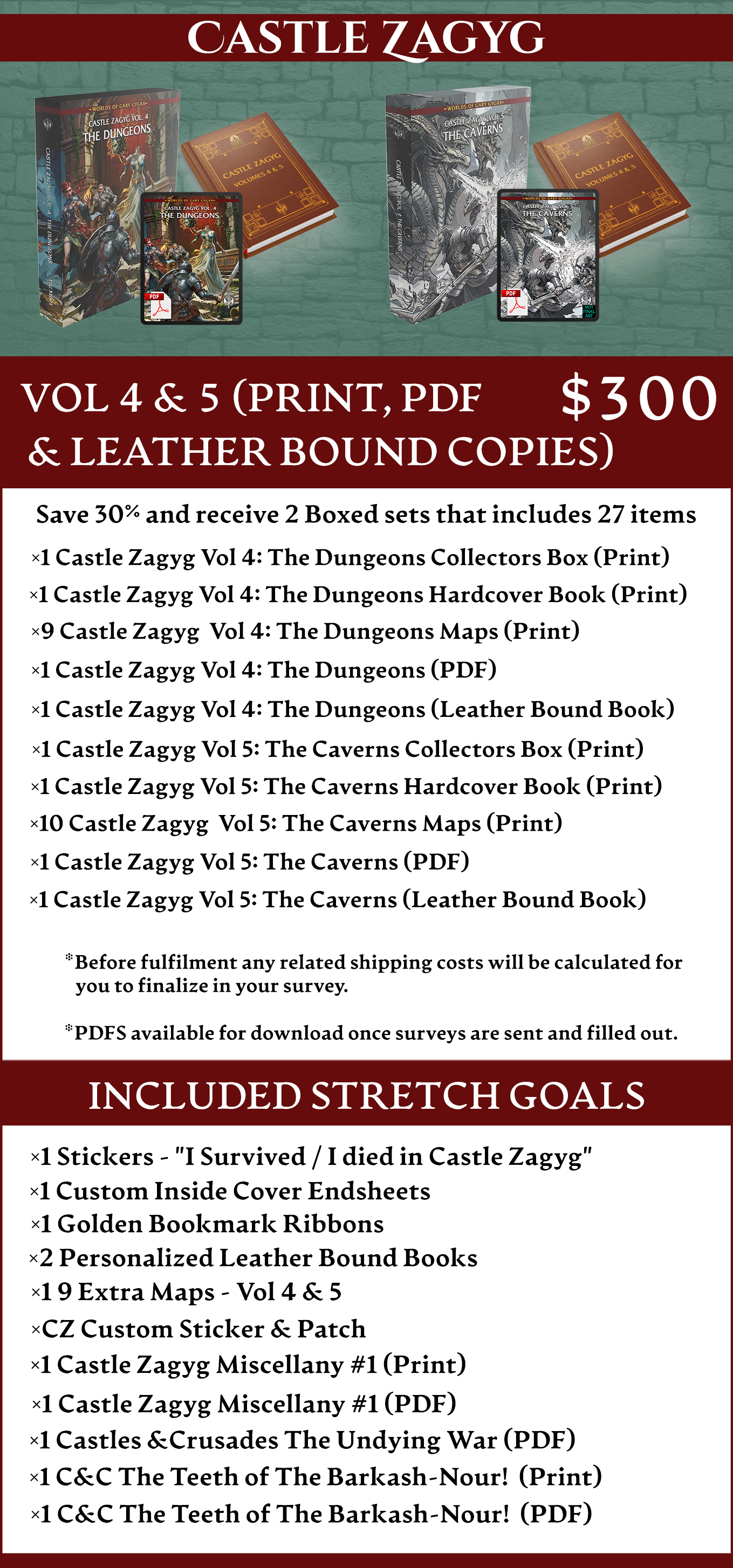 Castle Zagyg Vol. 4 The Dungeons (dungeon levels 6-9 and sub-levels), Box Set and Hardcover