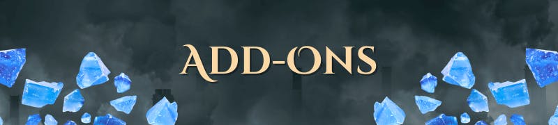Here are the current available add-ons which you can order as extras on top of your pledge! As stretch goals unlock, more add-ons will be added. Prices are in GDP, but Backerkit will provide their own estimations. Bear in mind that shipping fees are charged separately.