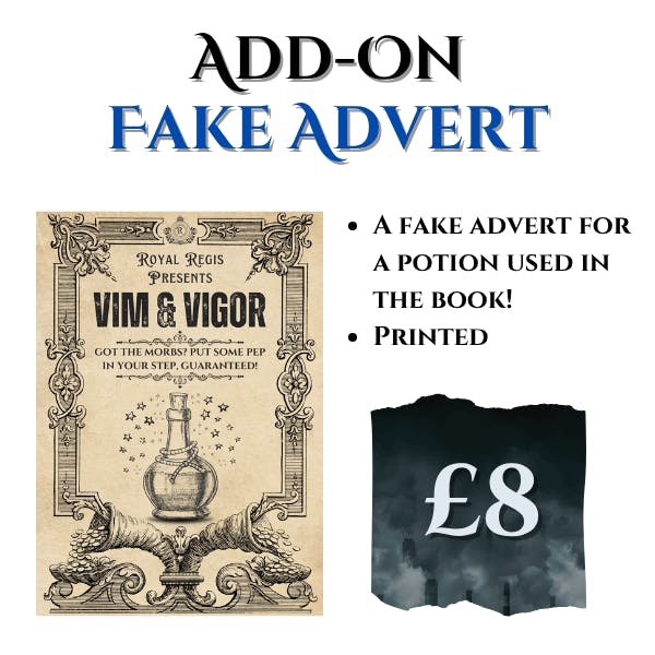 Show your appreciation for capitalism with this advertisement for the Royal Regis patented Vim & Vigor potion! Each print is A4 sized and comes with a single-sided gloss lamination. Each print also comes with a free bookmark.