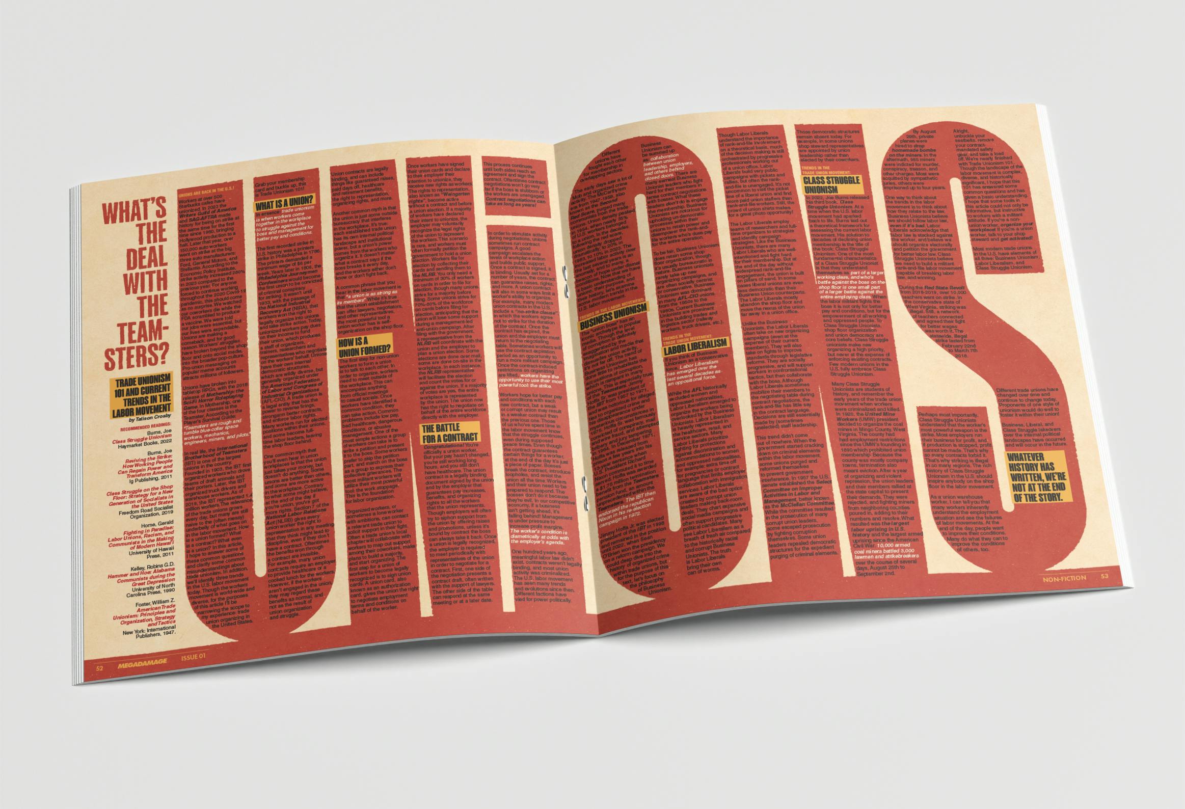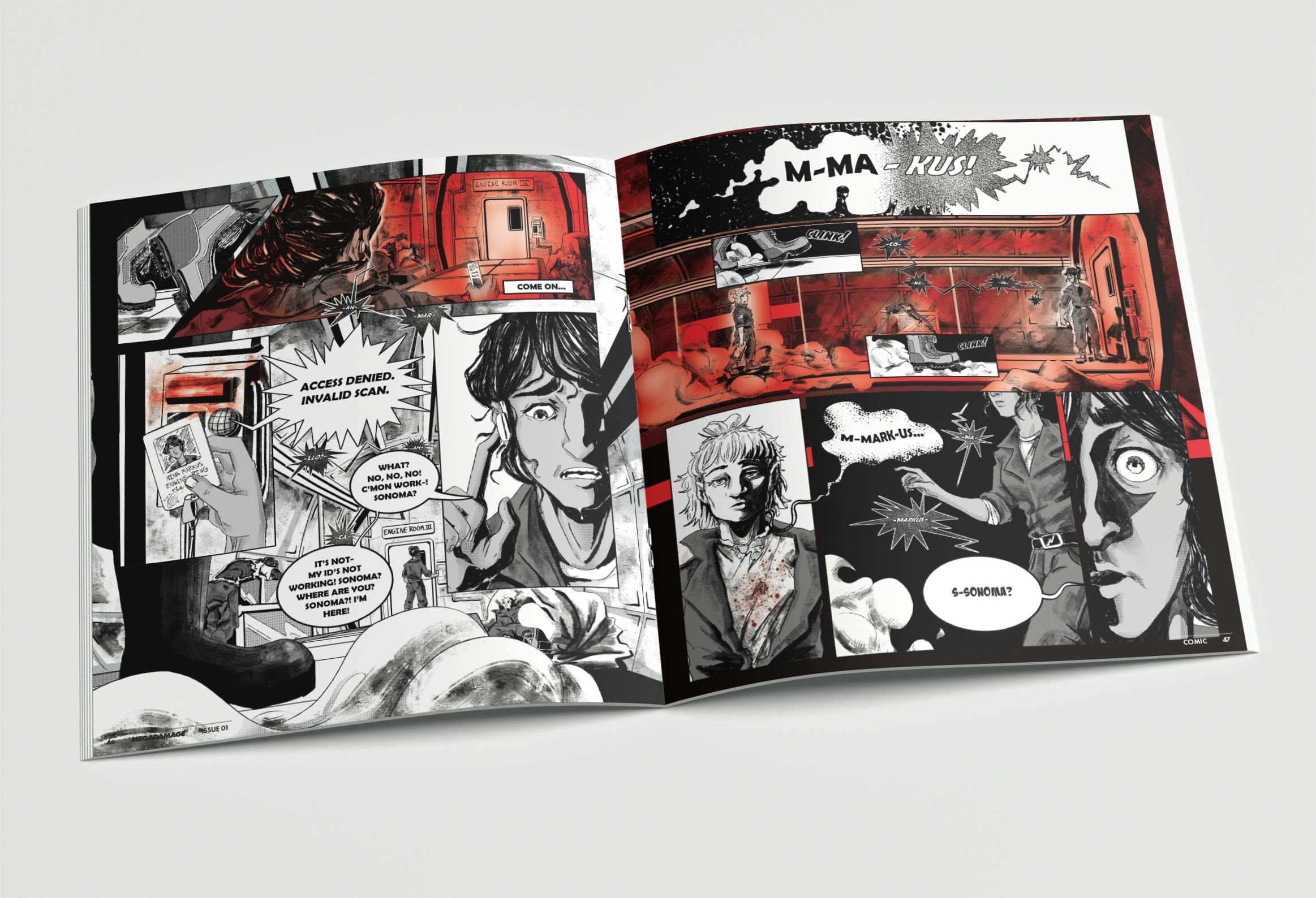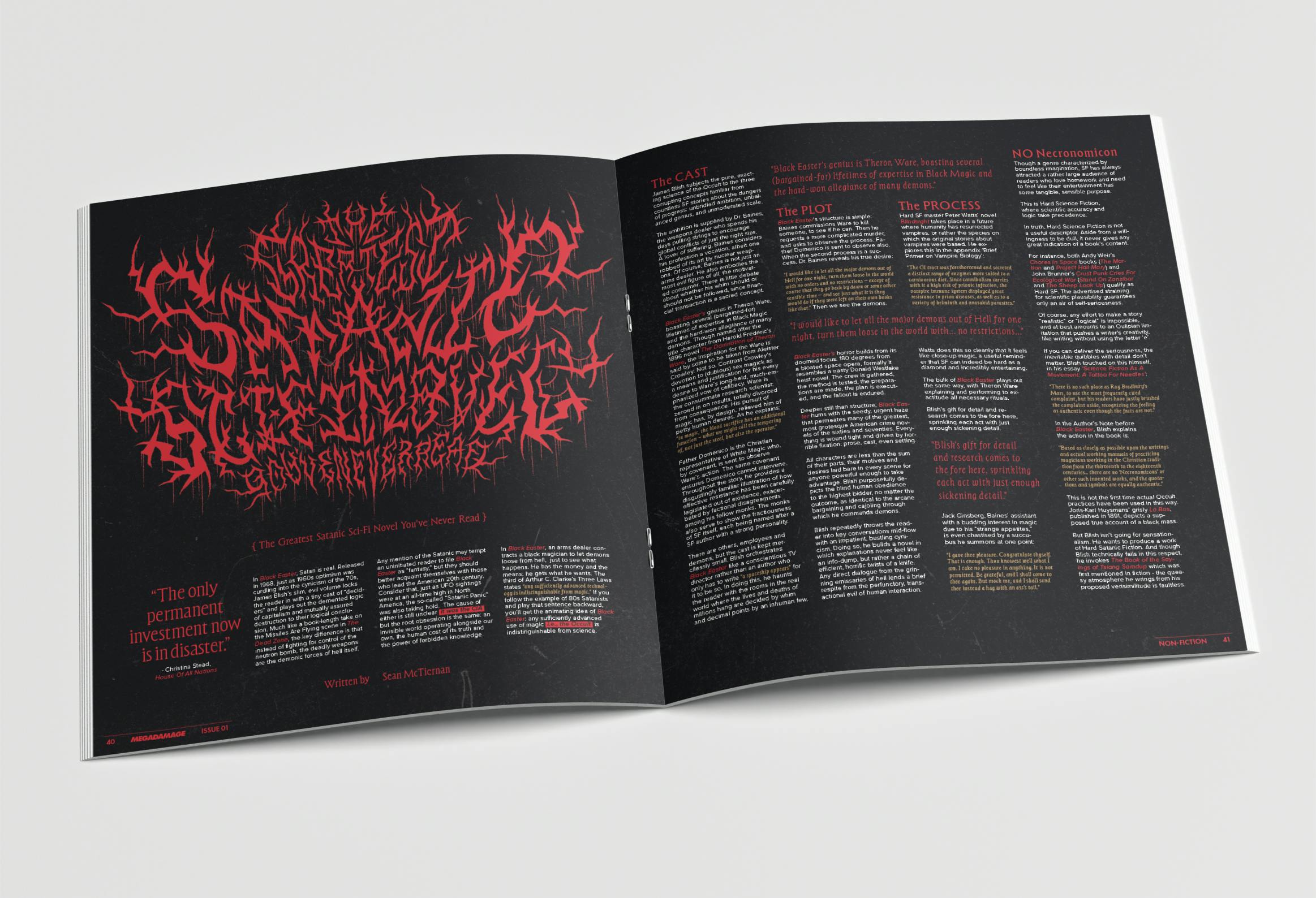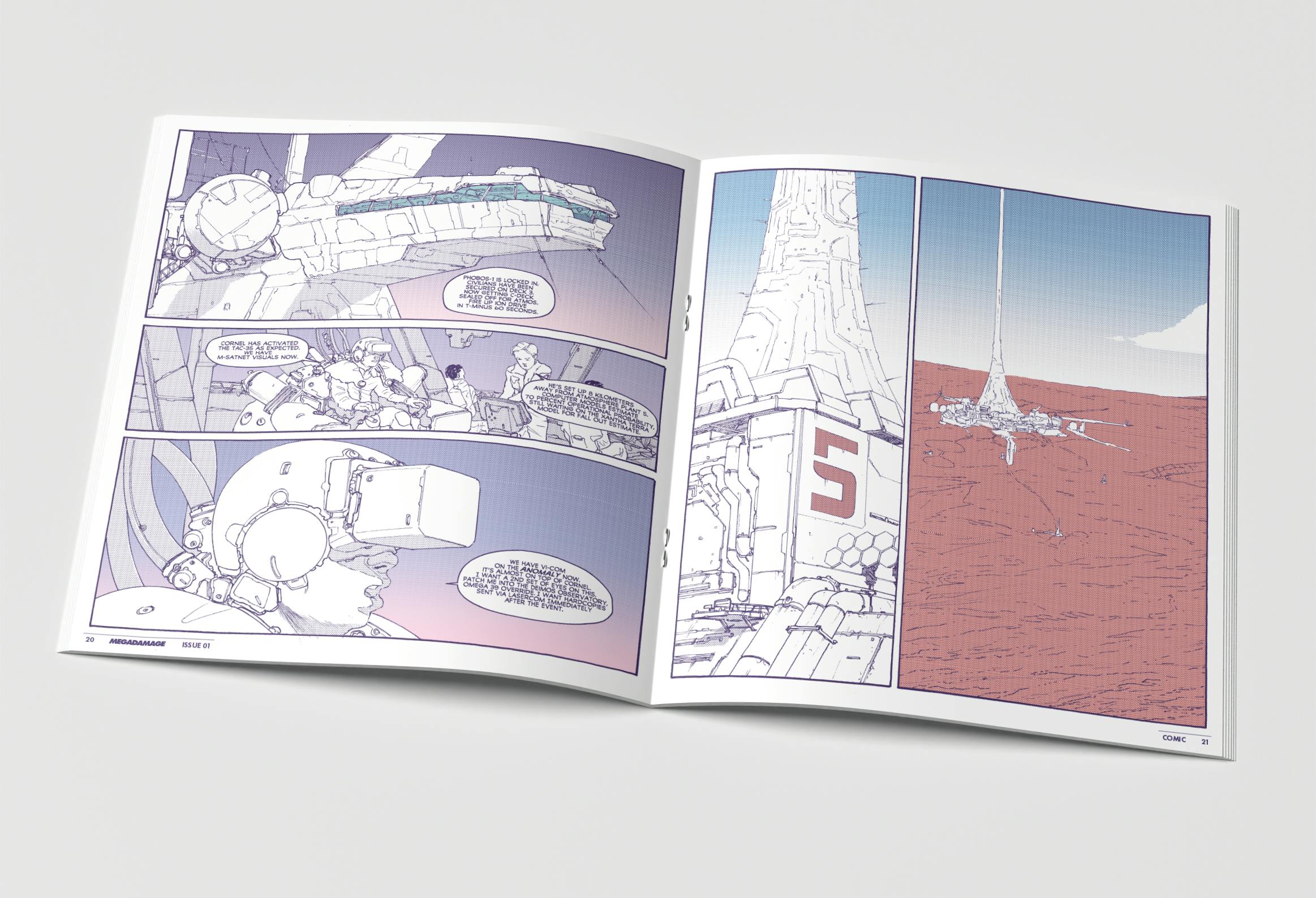 Quick update. Thank you so much for sending in your feedback on Wages. We've corrected a ton of errors and now we're getting the print files together for production. We're also almost finished with Megadamage 01, so I wanted to share some of the spreads from that as well! It's looking AMAZING. 200 pages. 11x12.4". The best writing and comics in sci-fi horror right now. You're gonna love it.