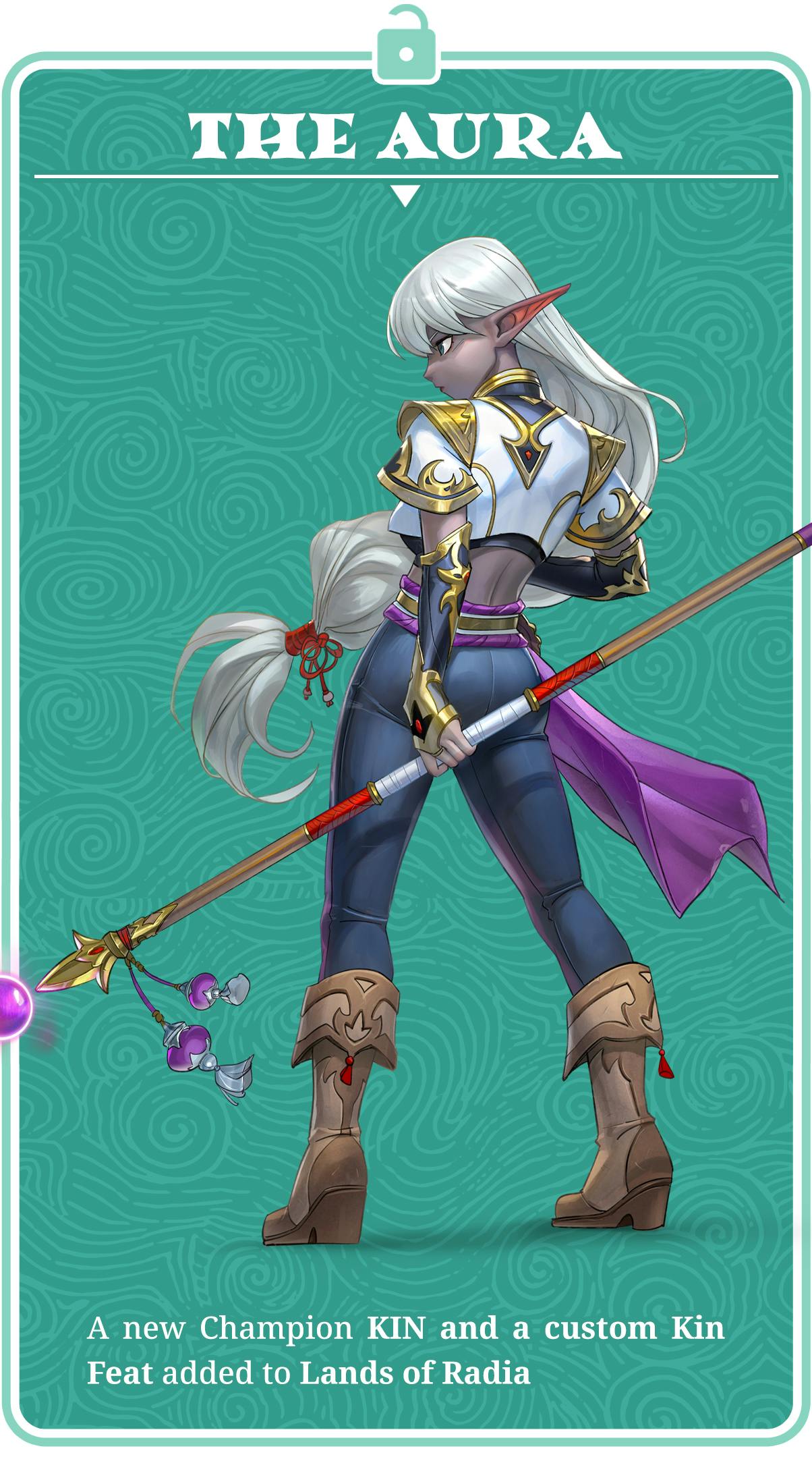 Core Rulebook - Hardcover + PDF Lands of Radia - Hardcover + PDF Starter Set + PDF Card Chest + PDF GM Screen UNLOCKED Dice Pouch UNLOCKED +2 Champion Sheet UNLOCKED Champion Tokens UNLOCKED Stamina Gems UNLOCKED Auran Font UNLOCKED Aura Kin UNLOCKED Way of the Shield UNLOCKED Way of the Hammer UNLOCKED Kokkoro! UNLOCKED Cooking Recipes UNLOCKED Soundtrack UNLOCKED UV Logo UNLOCKED Kin Cards UNLOCKED Feat Cards UNLOCKED Spell Cards UNLOCKED Cheat Sheet - PDF UNLOCKED Solo Mode - PDF