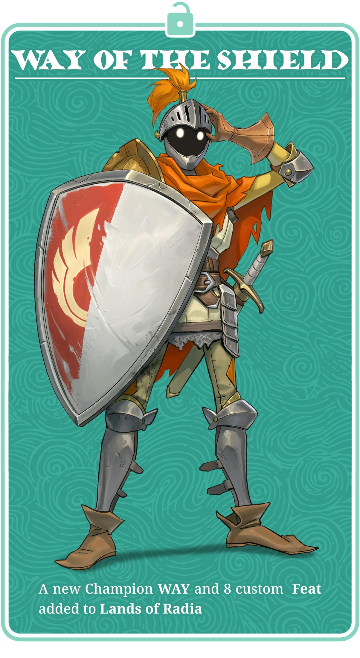 Core Rulebook - PDF Lands of Radia - PDF Starter Set - PDF Card Chest - PDF UNLOCKED Auran Font UNLOCKED Aura Kin UNLOCKED Groda Kin UNLOCKED Way of the Shield UNLOCKED Way of the Hammer UNLOCKED Kokkoro! UNLOCKED Cooking Recipes UNLOCKED Soundtrack UNLOCKED +2 Champion Sheet - PDF UNLOCKED Kin Cards - PDF UNLOCKED Feat Cards - PDF UNLOCKED Spell Cards - PDF UNLOCKED Cheat Sheet - PDF UNLOCKED Solo Mode - PDF UNLOCKED Alchemy VTT