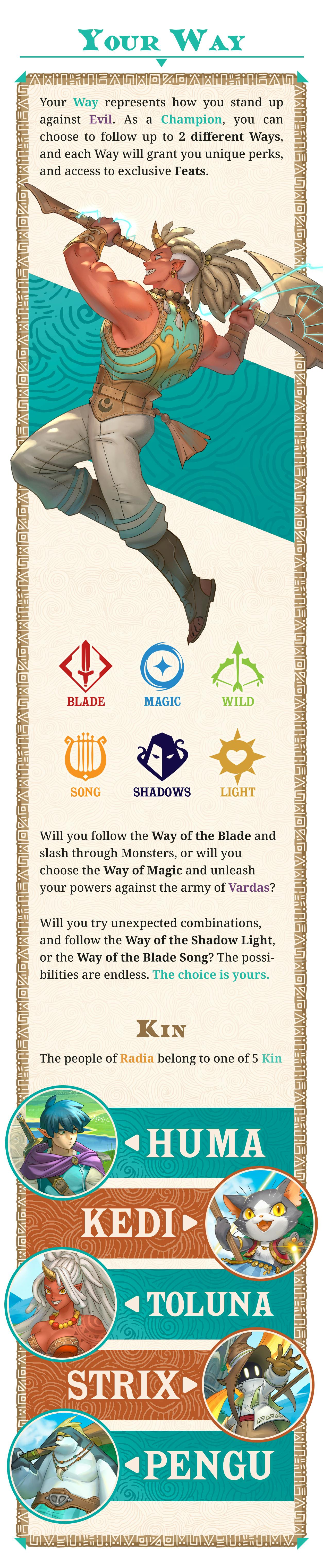Your Way represents how you stand up against Evil. As a Champion, you can choose to follow up to 2 different Ways, and each Way will grant you unique perks, and access to exclusive Feats.