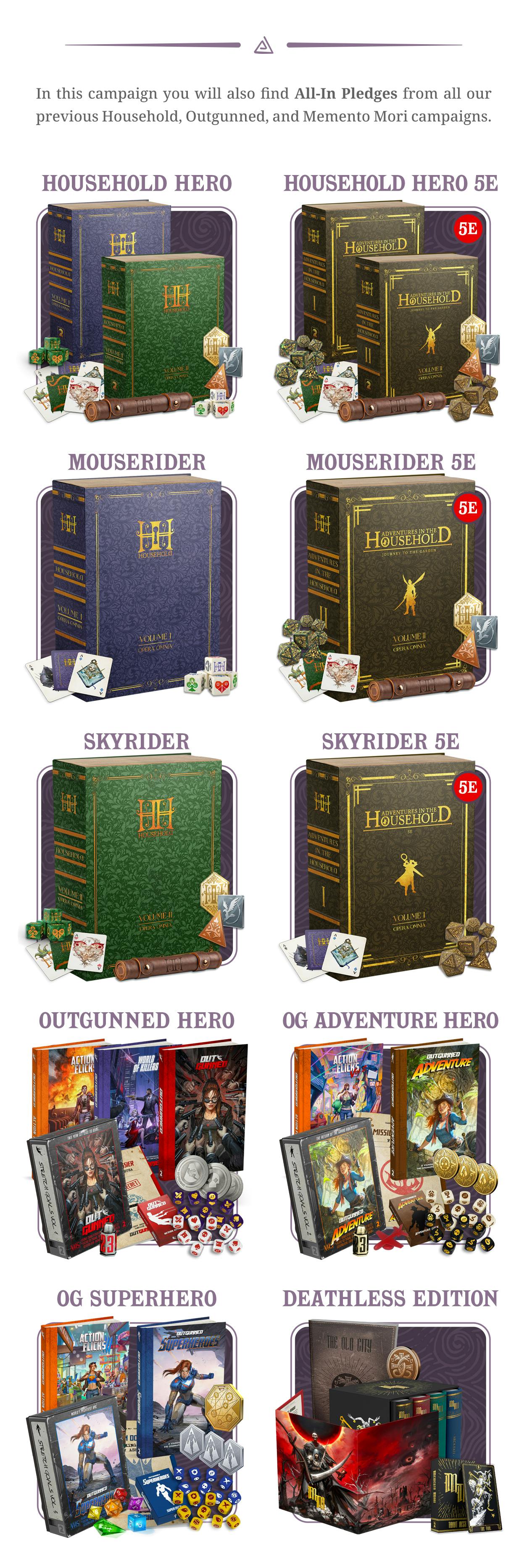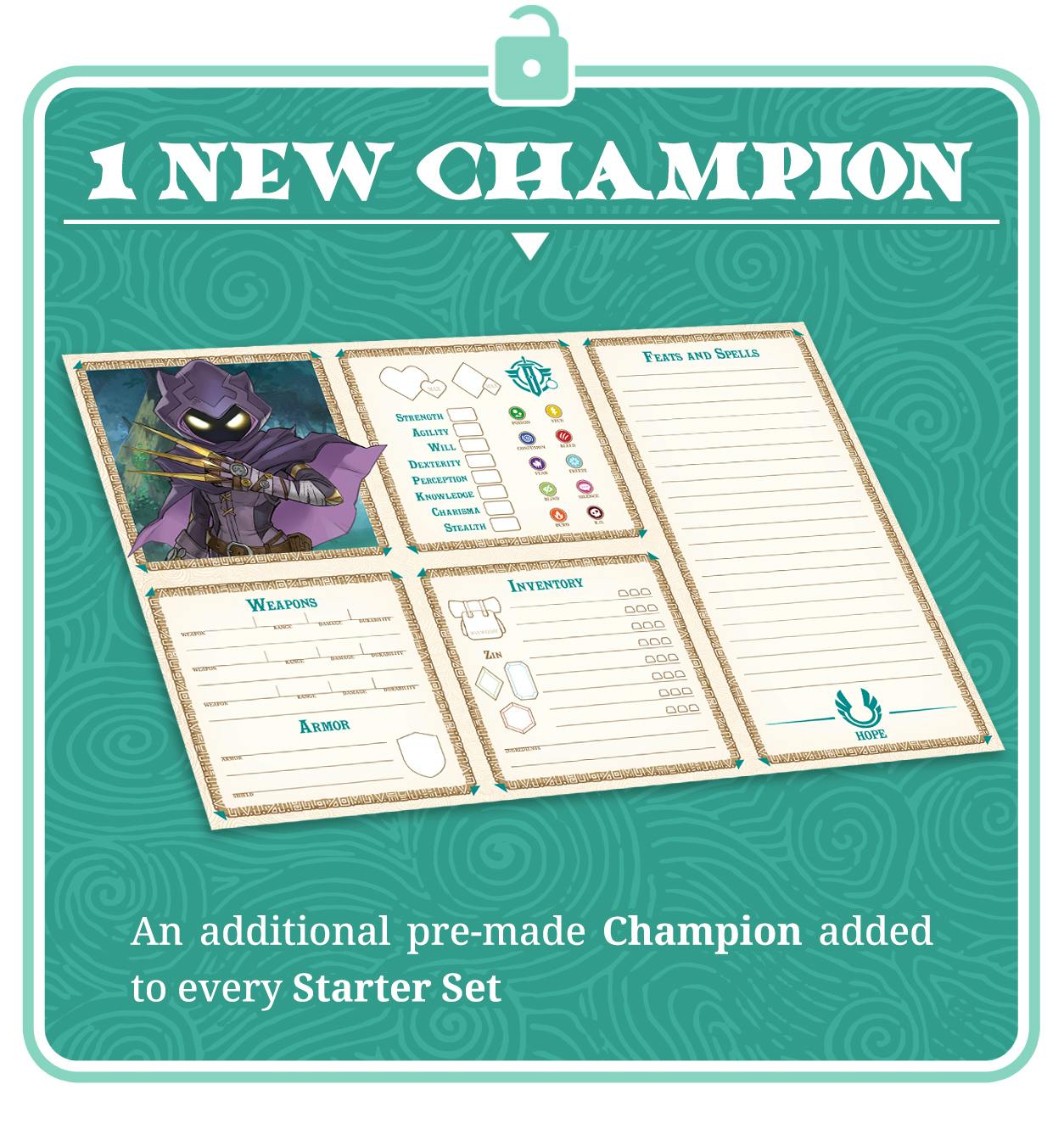 Starter Set Starter Set - PDF All Unlocked Relevant Stretch Goals UNLOCKED Auran Font UNLOCKED Soundtrack UNLOCKED +2 Champion Sheet UNLOCKED Champion Tokens UNLOCKED Cheat Sheet - PDF UNLOCKED Solo Mode - PDF UNLOCKED Alchemy VTT