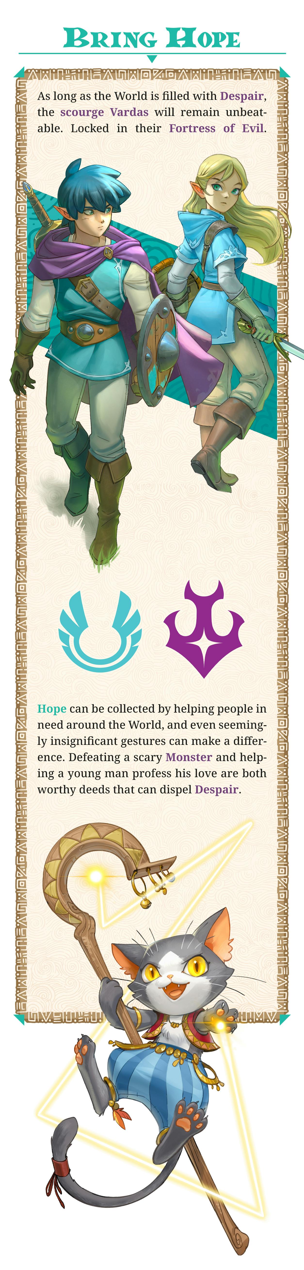 You awaken in a world you do not know. The Spirits have chosen you to defeat the forces of Evil. Only you can free Radia from Despair, and bring back Hope!