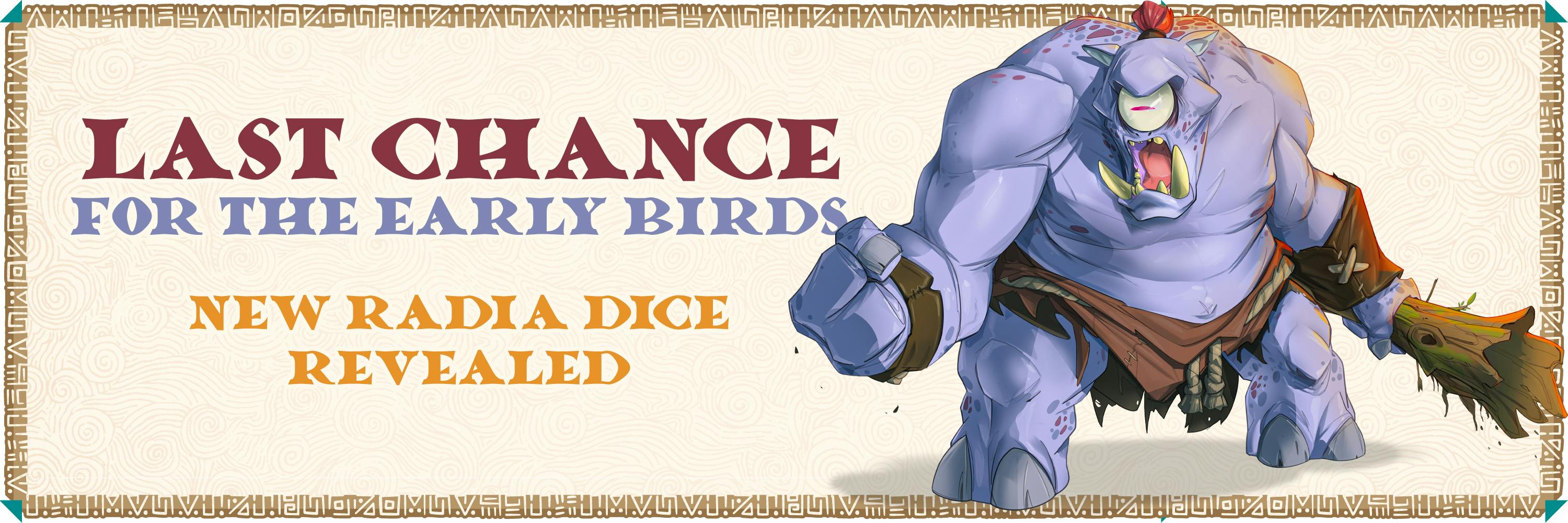 At 400k, we will celebrate with a brand new set of yellow RADIA DICE. Free for every Champion and Twilight Champion, and also available as Add-On.