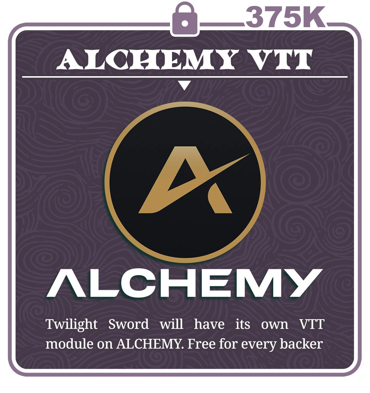 At 375k, Twilight Sword will have its own VTT Module on ALCHEMY, and it will be FREE for EVERY BACKER!