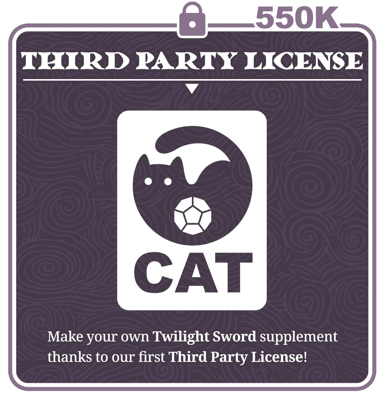 Thanks to this Stretch Goal, we will release a Third Party License that will allow YOU to make and publish your own Twilight Sword supplements using its signature CAT system. You will be free to make your own Kin, Ways, Adventures, and entire new supplements, and you'll be free to publish them and sell them as you like.