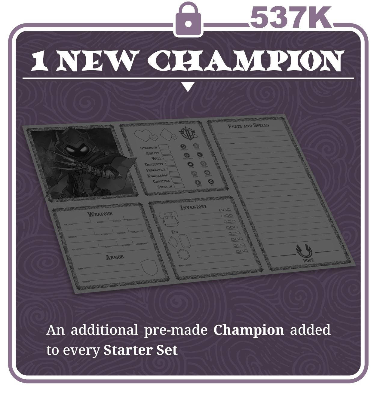 We will add an additional Champion Sheet to EVERY Starter Set. This will take the grand total of pre-made Champions to 6!