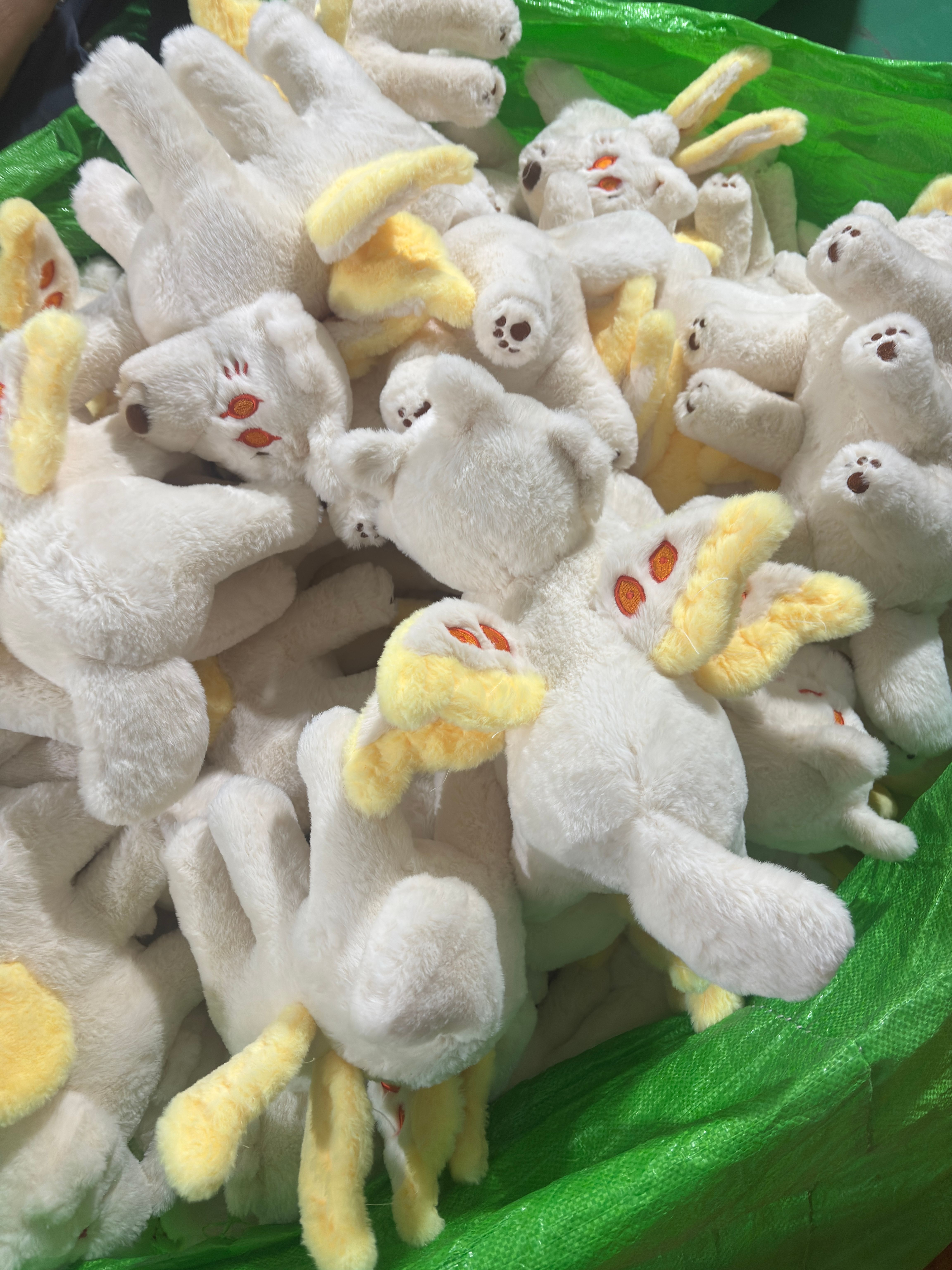 These are the only photos I've received, and the manufacturer said they want to ship the plushies soon. However I noticed the eye color doesn't quite match the sample, so I've reached out to the manufacturer for more photos, hopefully it's just the lighting but I'll keep you all updated on any developments.