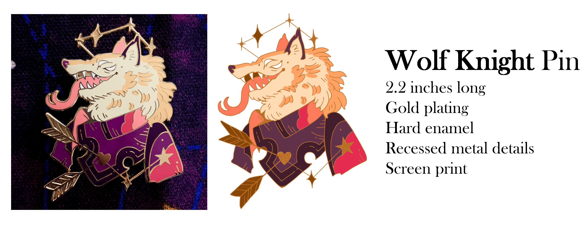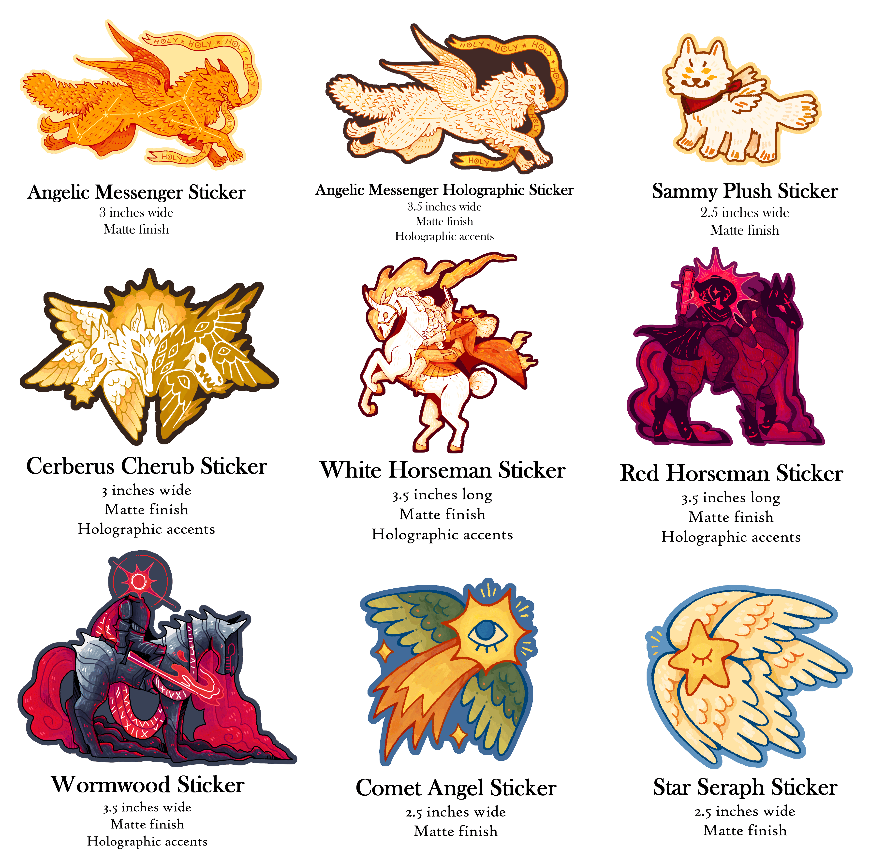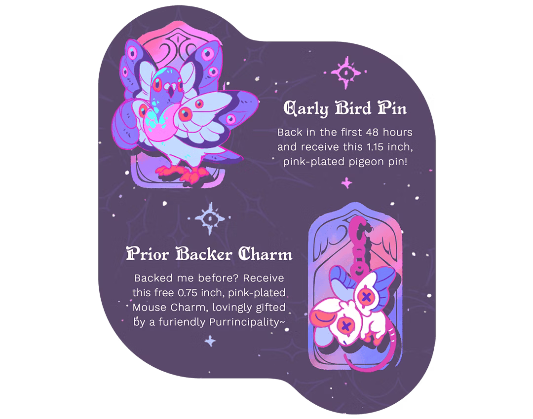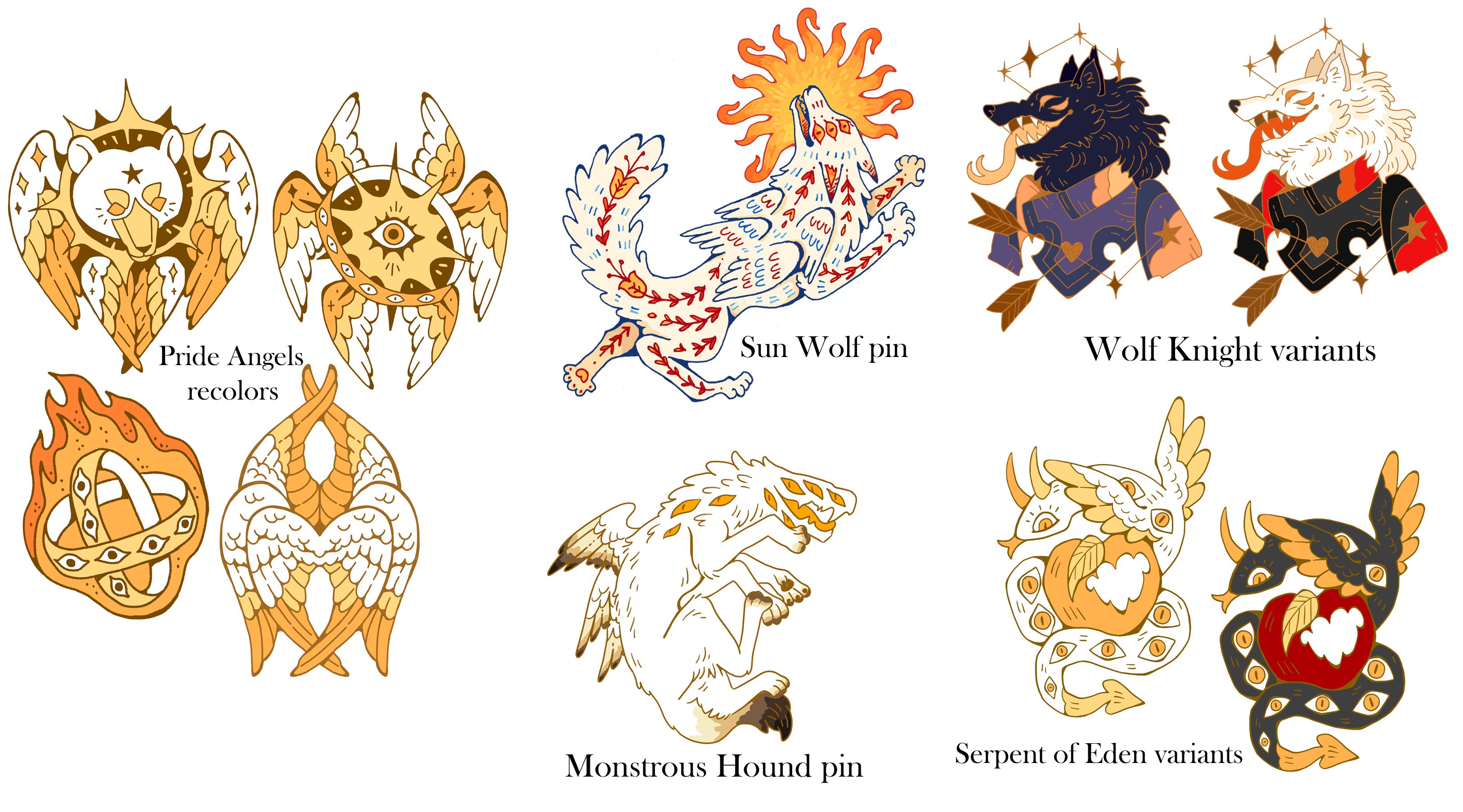 Don't forget to check out our partnered campaign FALLEN ANGELS Enamel Pins. If you pledge to both campaigns you'll receive a pair of cross-collaboration freebie pins. And if you're looking for even more pins, check out the rest of the Angels & Demons campaigns! If you pledge to three or more campaigns you'll receive the exclusive Sun Wolf holographic sticker from this campaign.