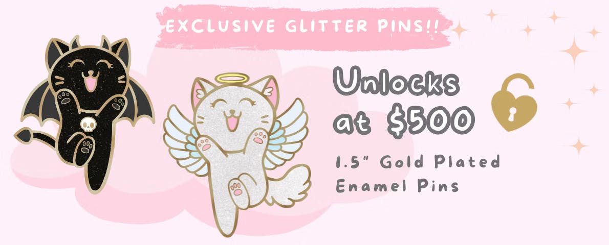 Thank you to everyone who voted for stretch goals! I have added Wolf Knight, Comet Angel, and Star Seraph to the campaign as stretch goals, all three pins will unlock at $8000. Be sure to suggest and vote for more goals on the discussion post, I may add a few more before the end of the campaign - feel free to be creative with your suggestions, I'd be happy to make an entirely new design from scratch if the idea for it is popular enough.
