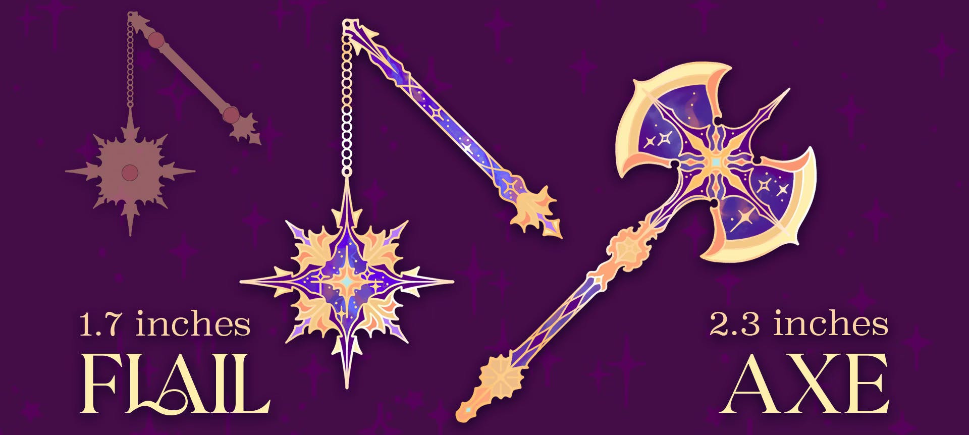 I'm a fan of flails and I'm so happy to see one featured in Celestial Armory. Also check out this stunning Comet pin from Cats Among the Cosmos!