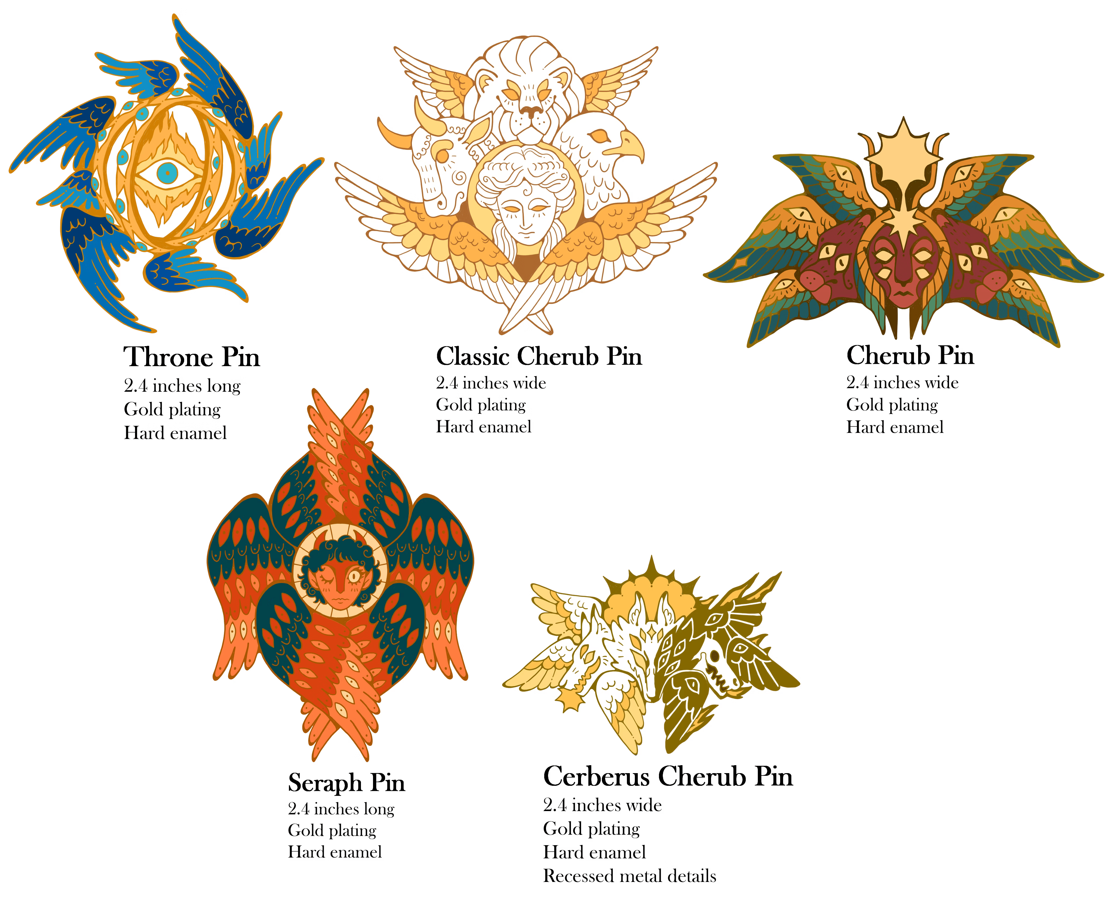 First of all I have to share pins from our partnered campaign, FALLEN ANGELS! I absolutely love Sky Guardian, and I'm so excited to have Hellhound as a companion for this campaign's Cerberus Cherub. There's also some amazing guest designs that have been funded!