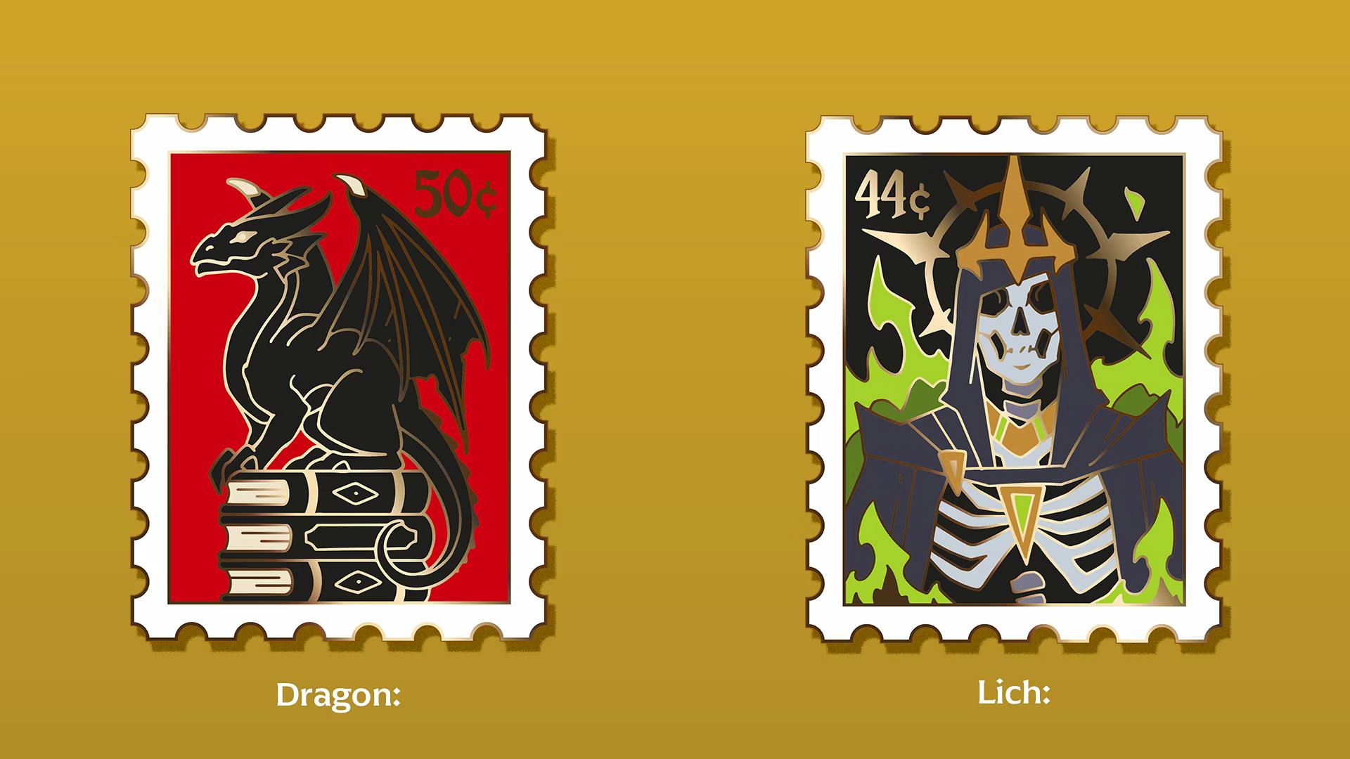 Sharing more monsters, the La Llorona pin from Super Naturals is beautiful, and I also love the Lich from Fantasy Stamps.