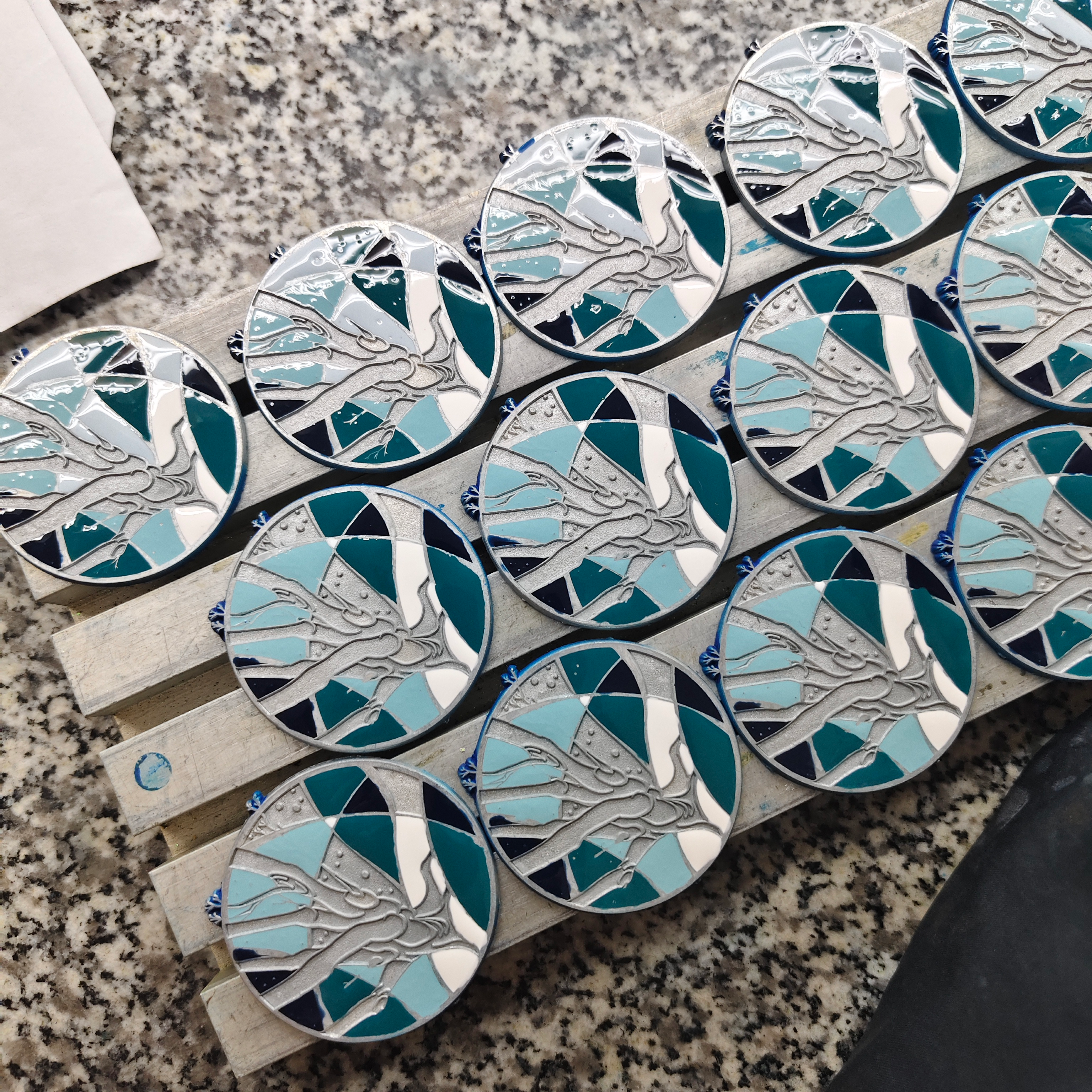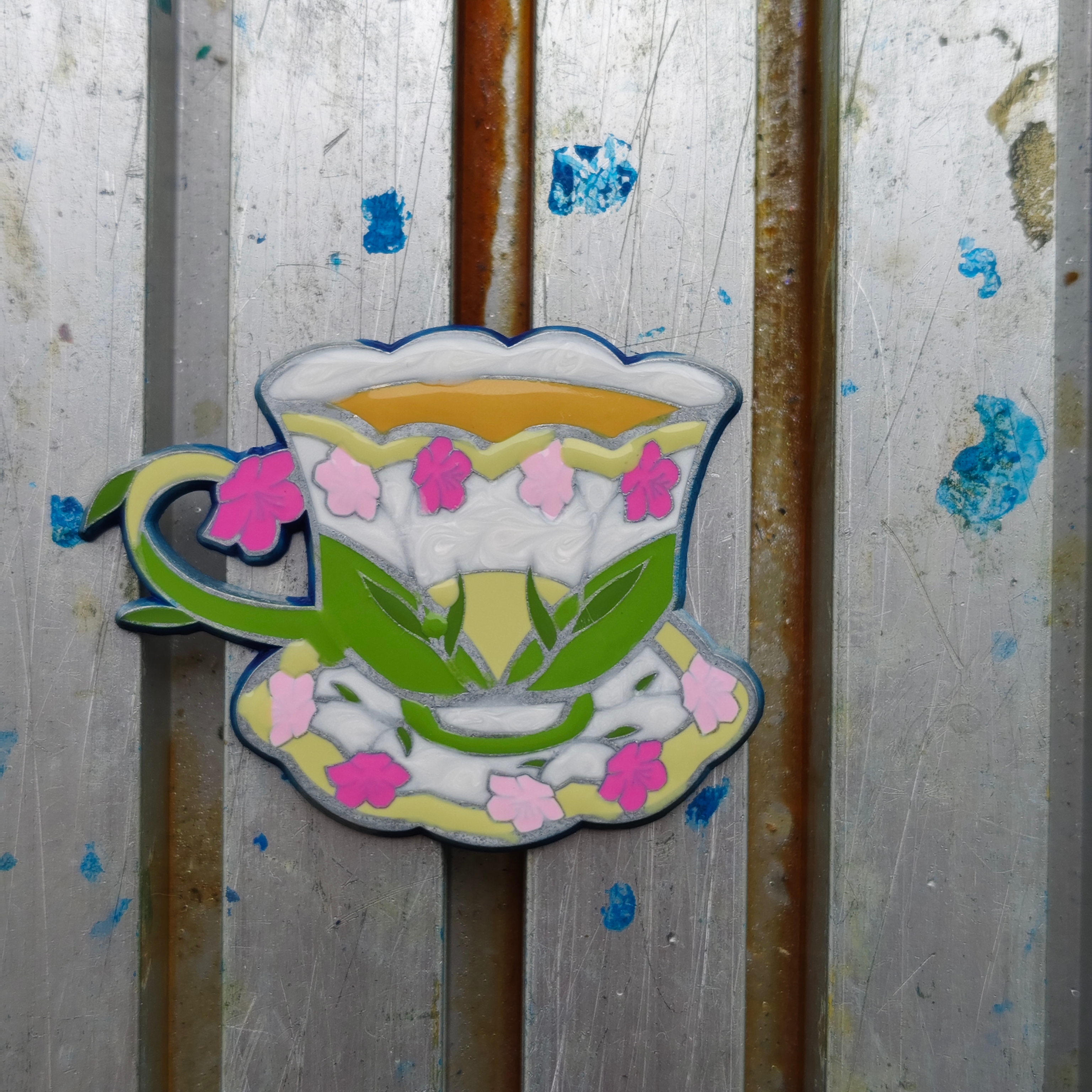 I always love seeing production pictures! I ordered the washi stickers which came in already. They look cute and the colours came out really well. The pins are in production. Which always look so nice to see them all together. I also received the samples for the spring tea cup with the pearl swirl effect. Note these are unfinished! Everything still needs to be polished and plated.