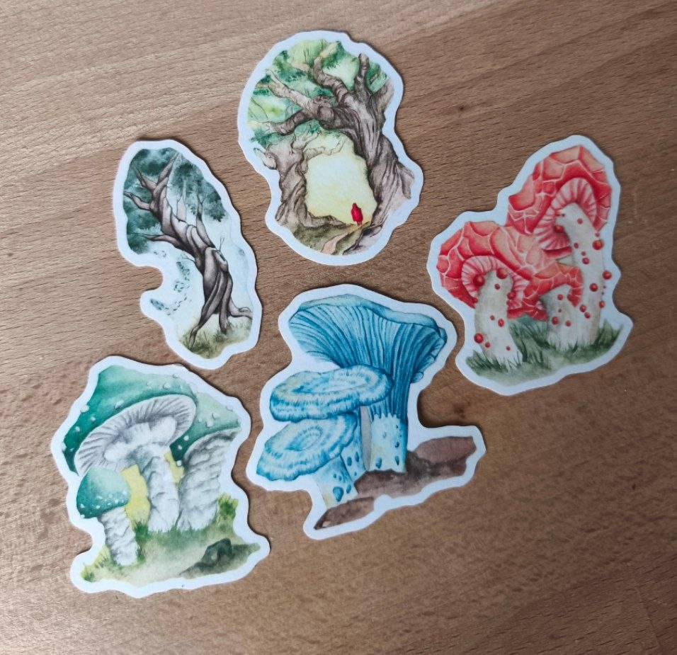 I have also added some new stickers, based on my mushrooms and other existing artwork! These are 2" Washi Stickers, so perfect for journalling.