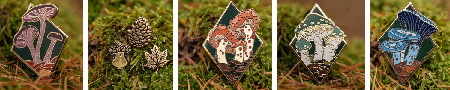 For those that are new to my pins, I have added my existing mushroom & forest treasure designs to the pledge manager as well. The are available as individual pins or as a set.